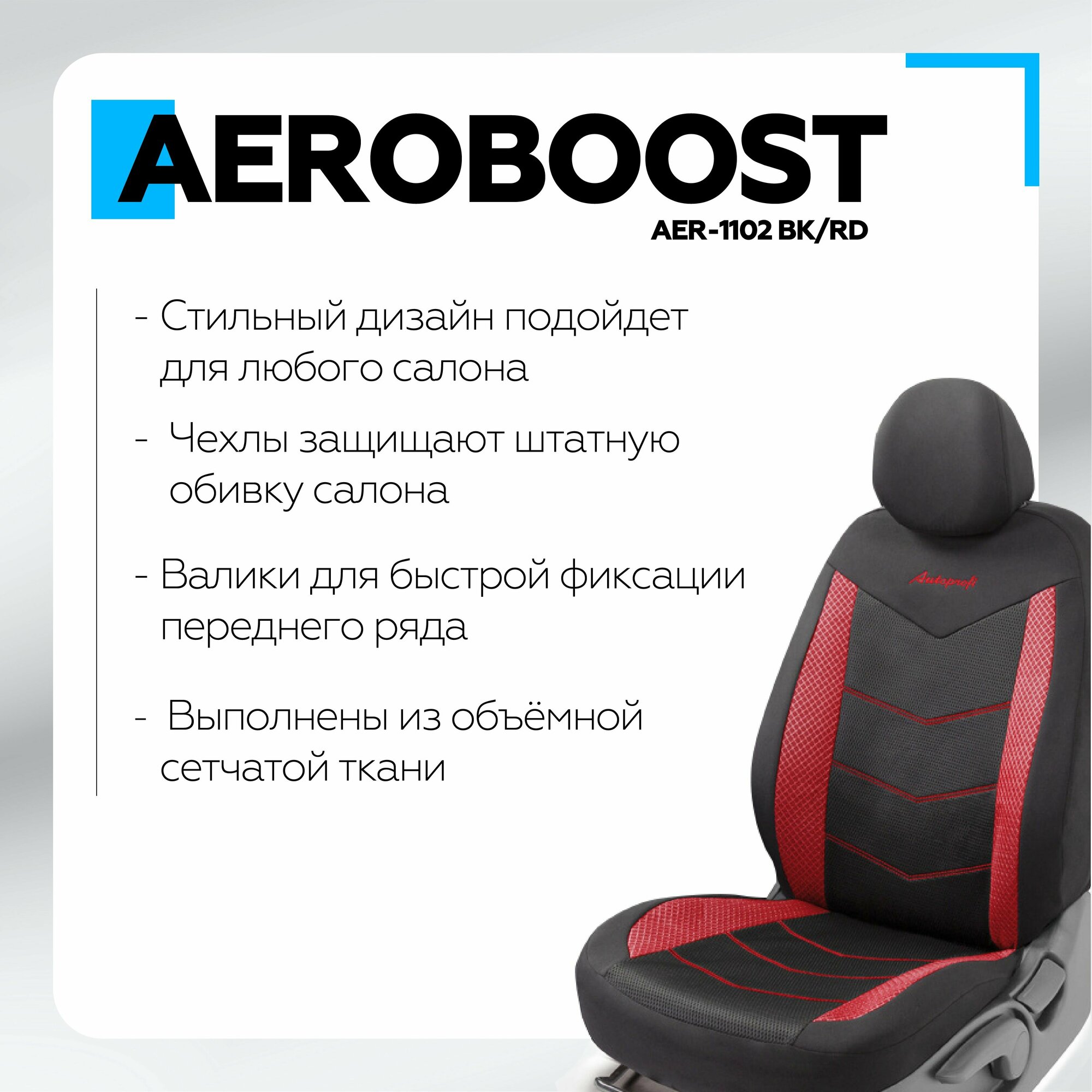Авточехлы универсальные AUTOPROFI AER-1102 BK/BK AEROBOOST, объёмная сетчатая ткань, 2 мм поролон, 3D крой, 11 пред., чёрый
