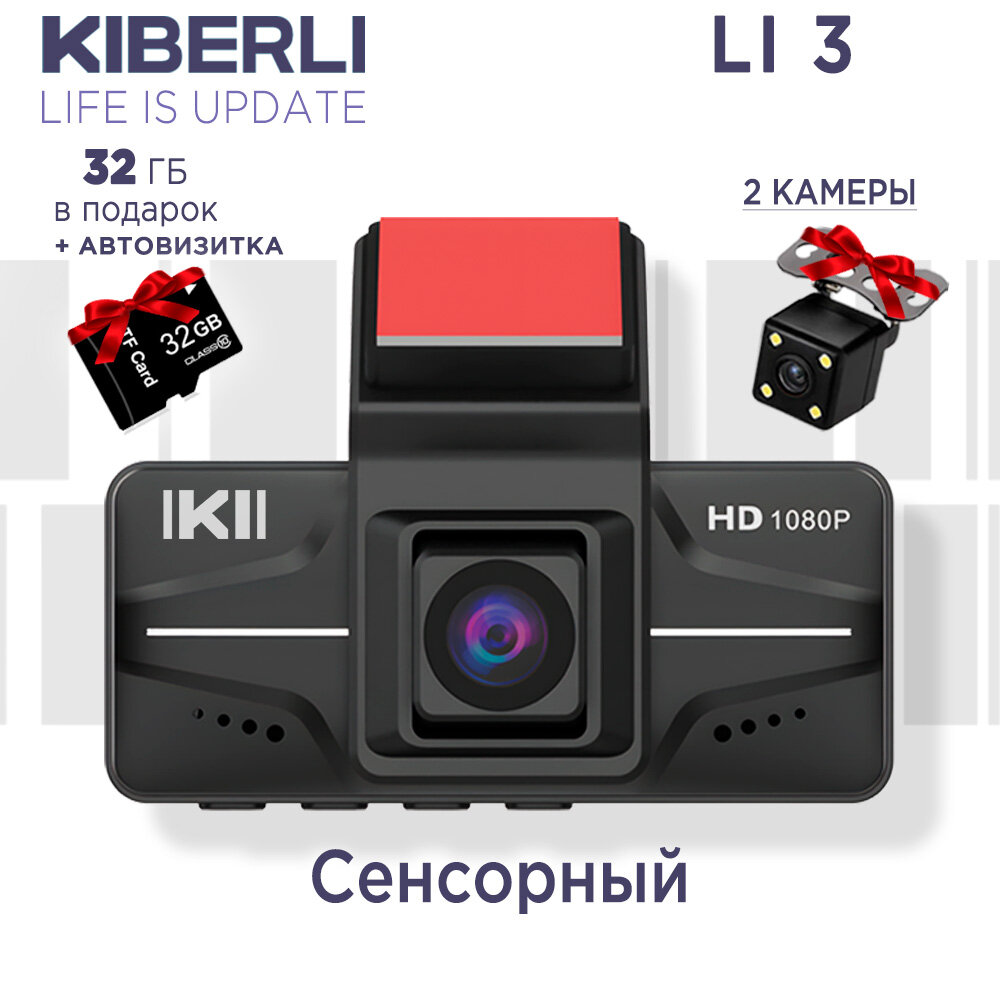 Видеорегистратор для автомобиля KIBERLI LI 3 / сенсорный, 2 камеры, датчик движения, G-сенсор, TF-карты на 32 Гб, автовизитка