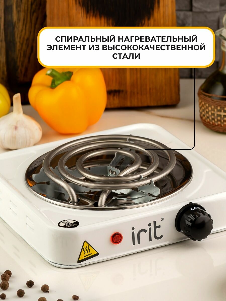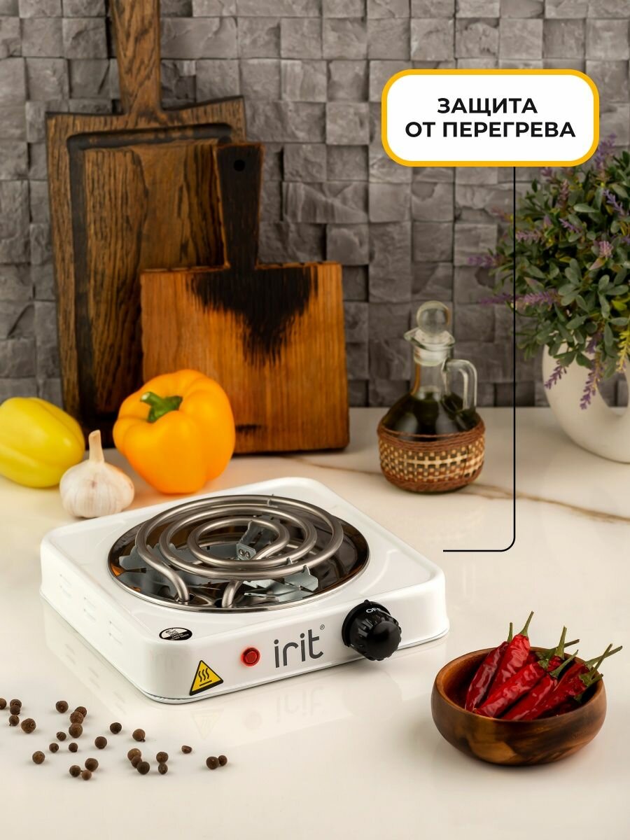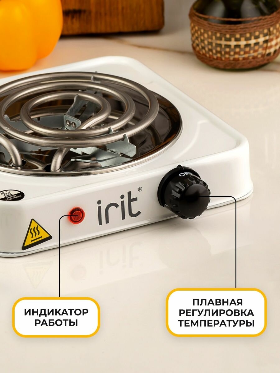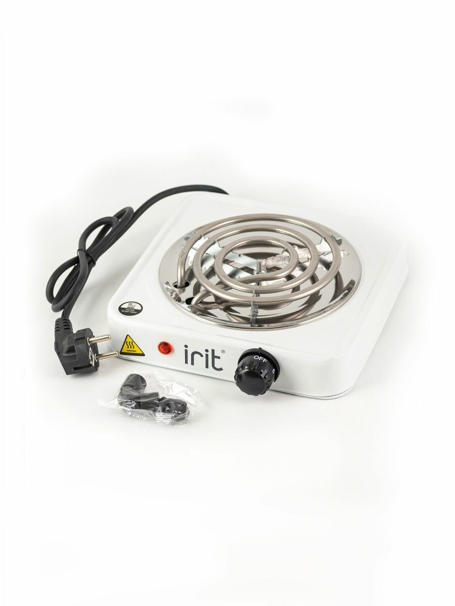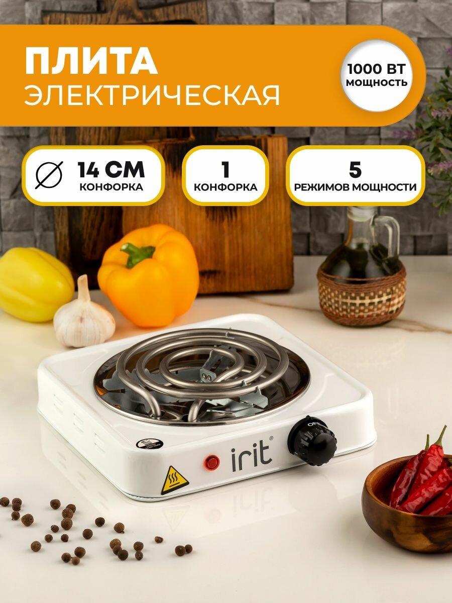 Плита электрическая Irit, IR-8005, 1000 Вт, 1 конфорка, спираль, эмаль, механическая, переключатель поворотный, белая