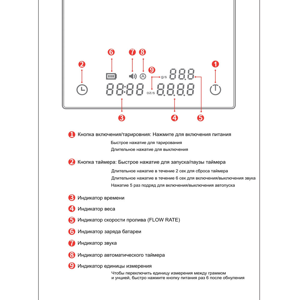 | Дополнительные функции | автоматическое выключение / измерение объема жидкости / таймер / тарокомпенсация |