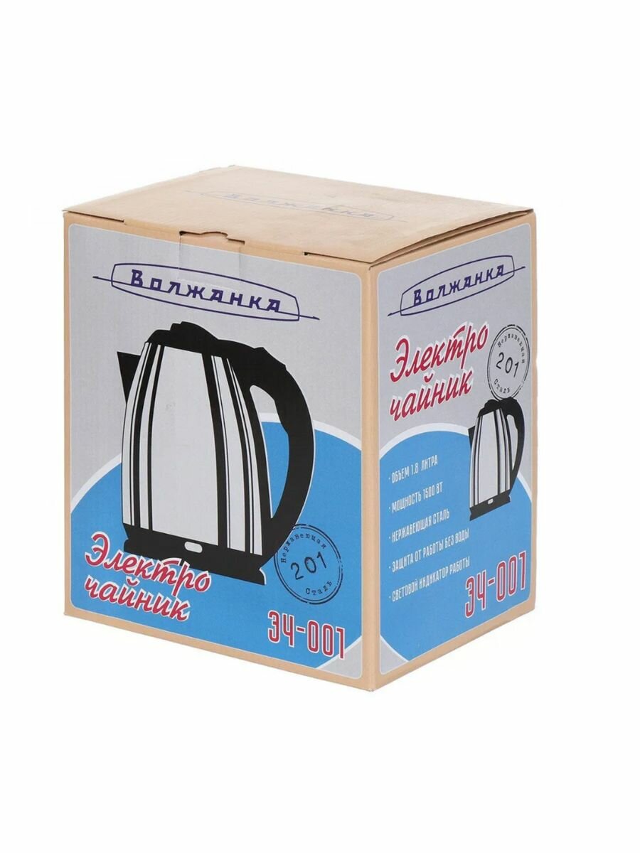Чайник электрический Волжанка, Волжанка ЭЧ-001, 1.8 л, 1500 Вт, скрытый нагревательный элемент, нержавеющая сталь