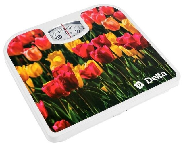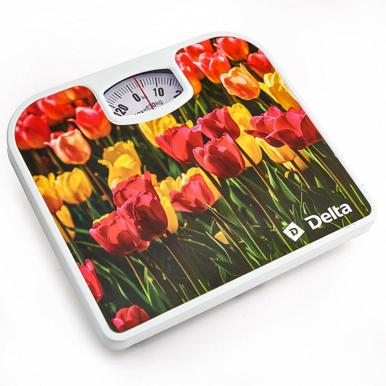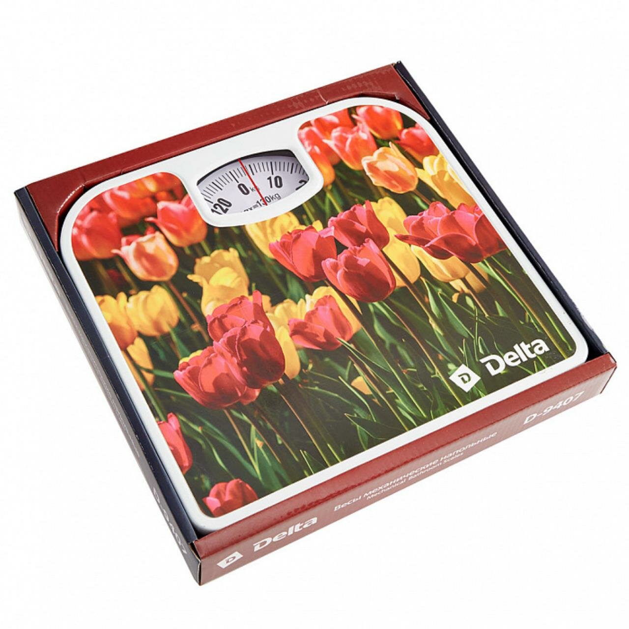 Весы напольные DELTA D-9407, механические, до 130 кг, картинка "Тюльпаны"