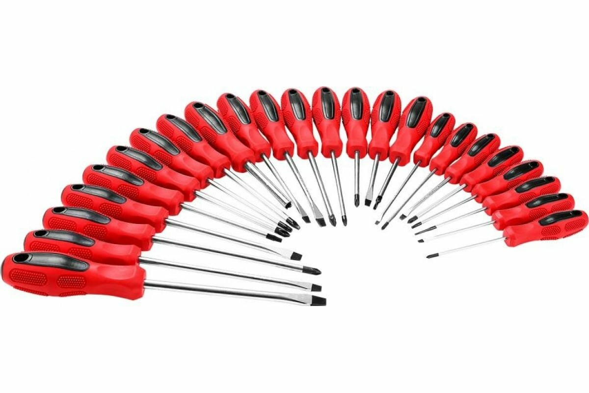 | Плюсы: | Большой набор, подставка, магнитные шлицы, удобные ручки |