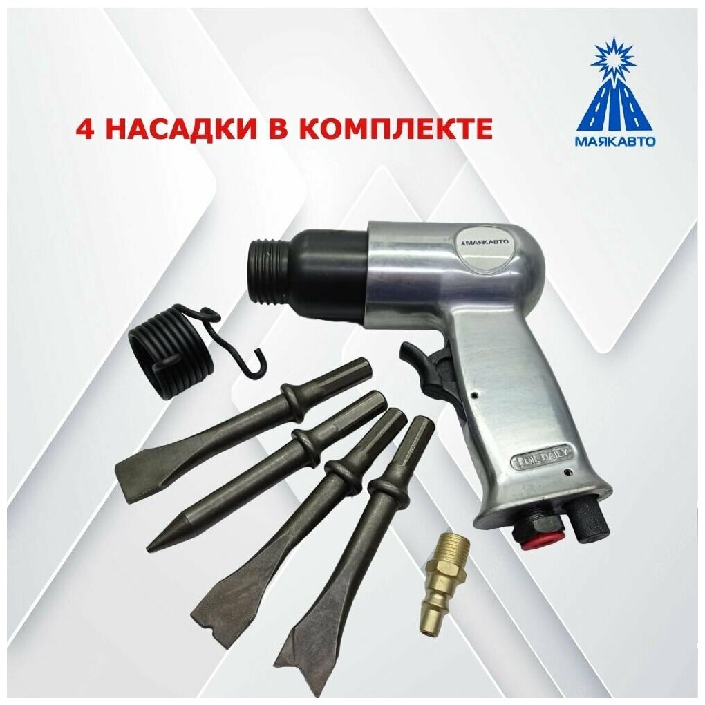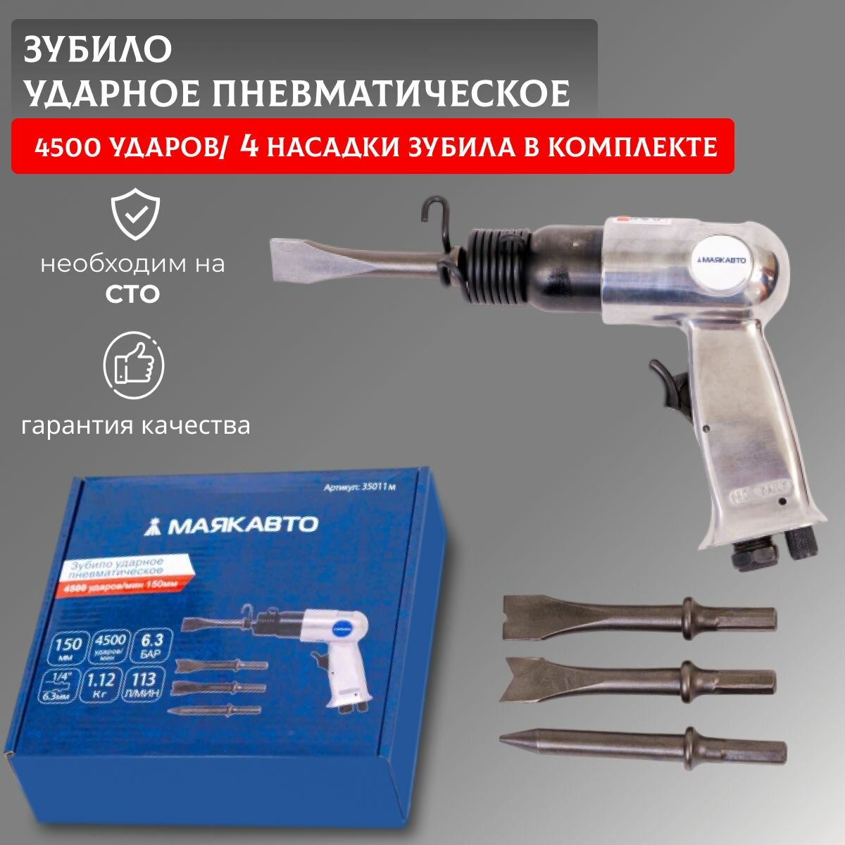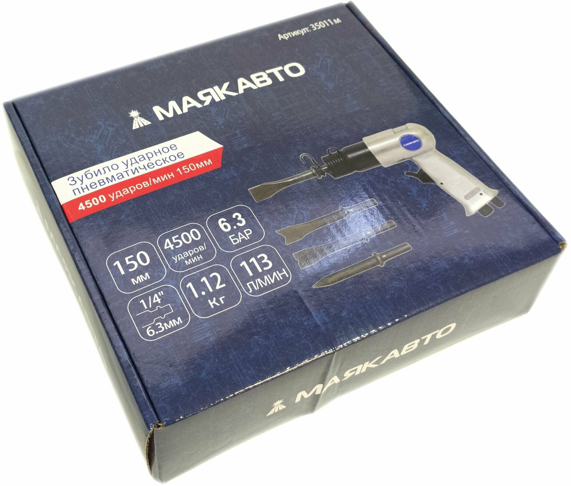 Пневмозубило ударное 4500 ударов/мин 150мм с комплектом насадок 4шт., 113 л/мин, 35011м, маякавто