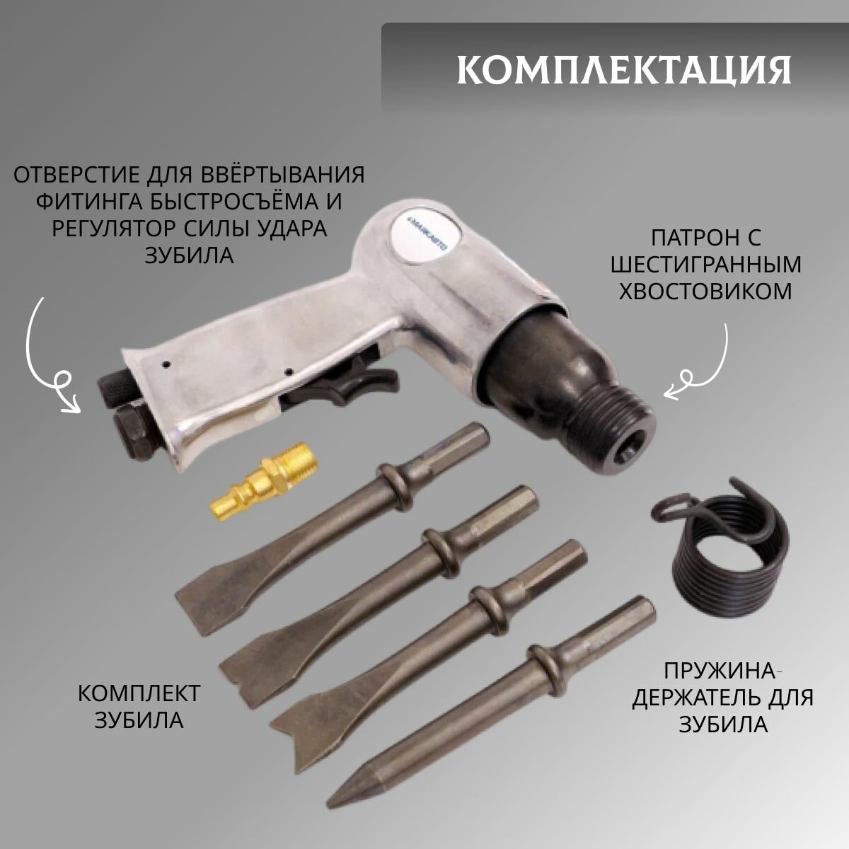 Зубило пневматическое ударное 4500 ударов/мин 150мм с комплектом насадок 4шт /Пневмозубило интересное:
