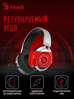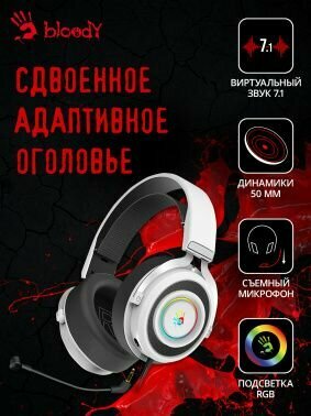 Игровые наушники с микрофоном A4Tech Bloody G535, Подсветка RGB, мониторные 7.1, 2м. USB, белый/черный