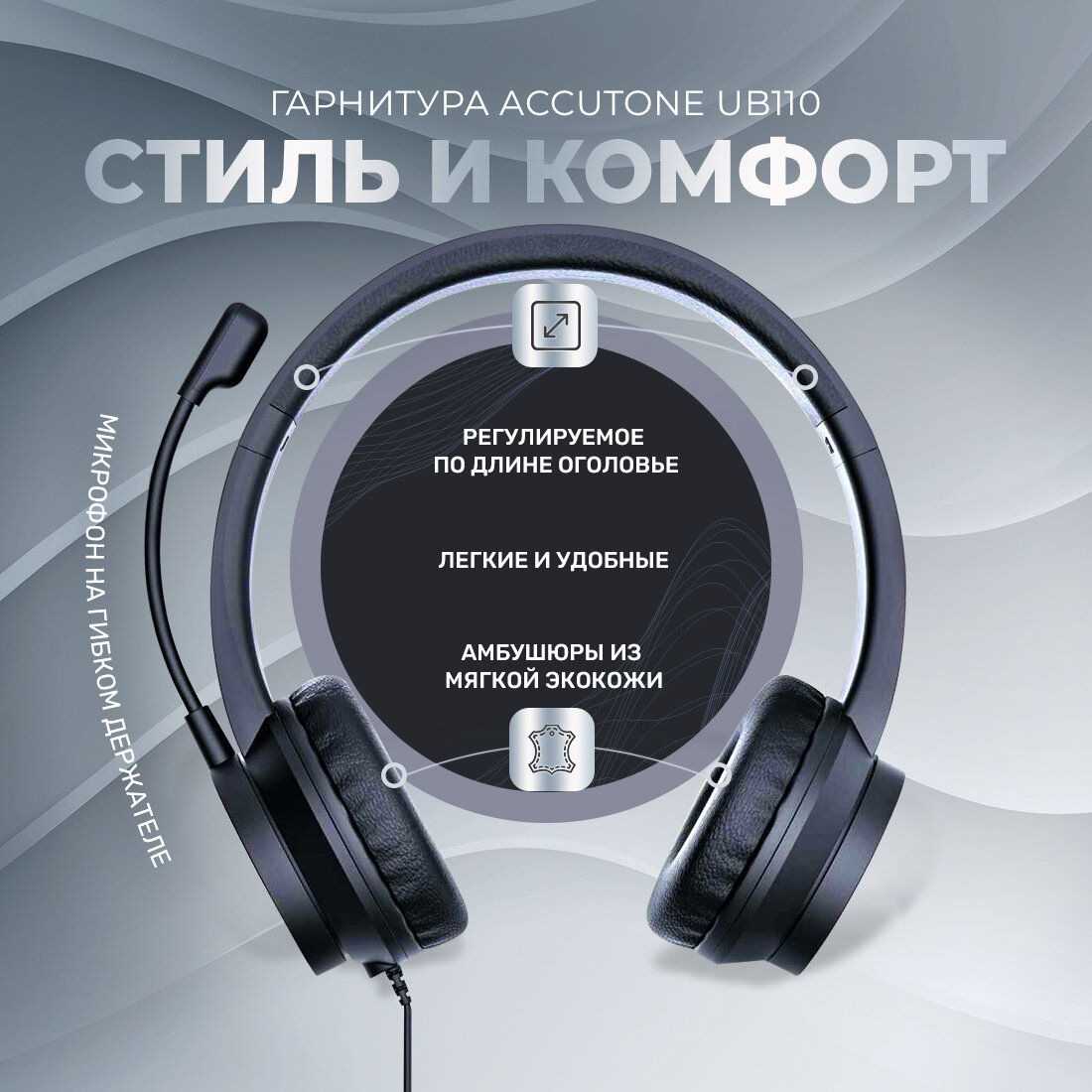 Компьютерная гарнитура с микрофоном Accutone UB110 USB black интересное: