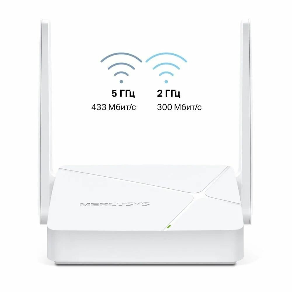 MERCUSYS AC750 Двухдиапазонный Wi-Fi роутер, до 300 Мбит/с на 2,4 ГГц + до 433 Мбит/с на 5 ГГц, 2 фикс. внешние антенны, 2 порта LAN 10/100 Мбит/с, 1