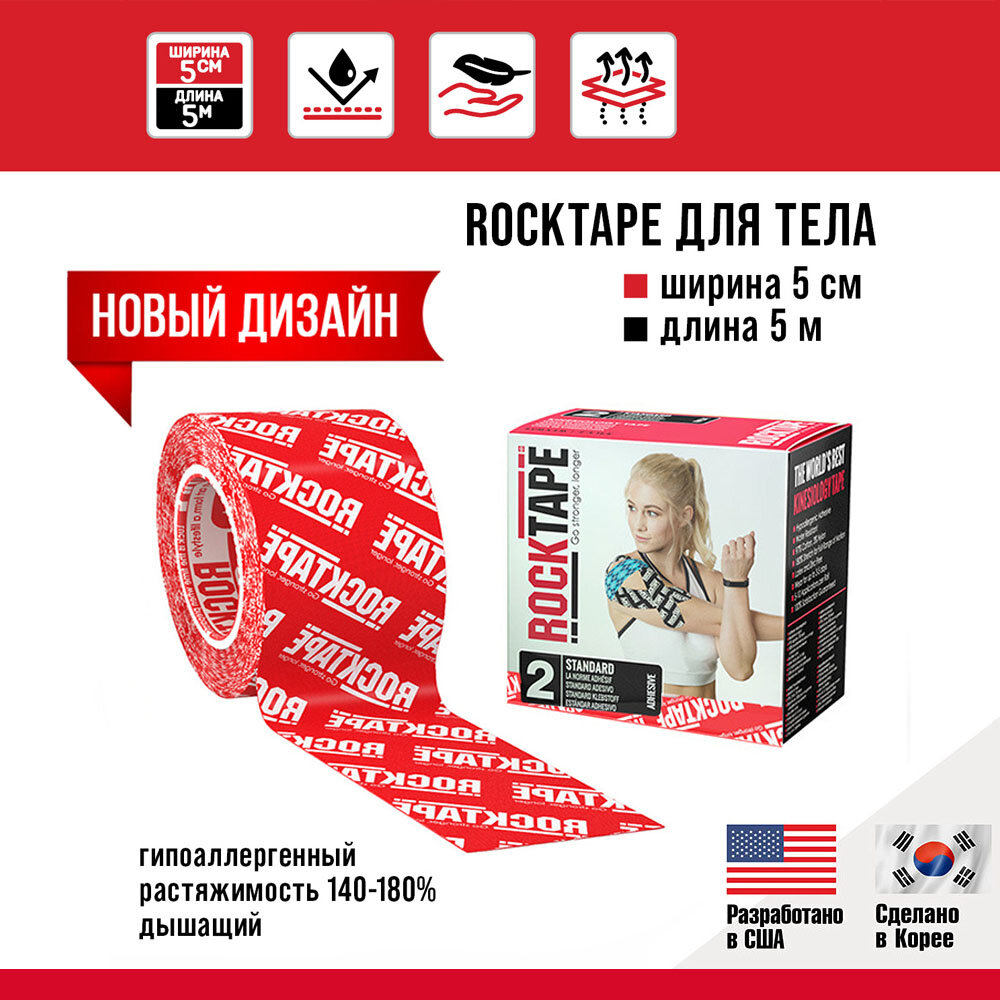 СохранитьКинезиотейп Rocktape 5 см х 5 м, красный лого интересное: