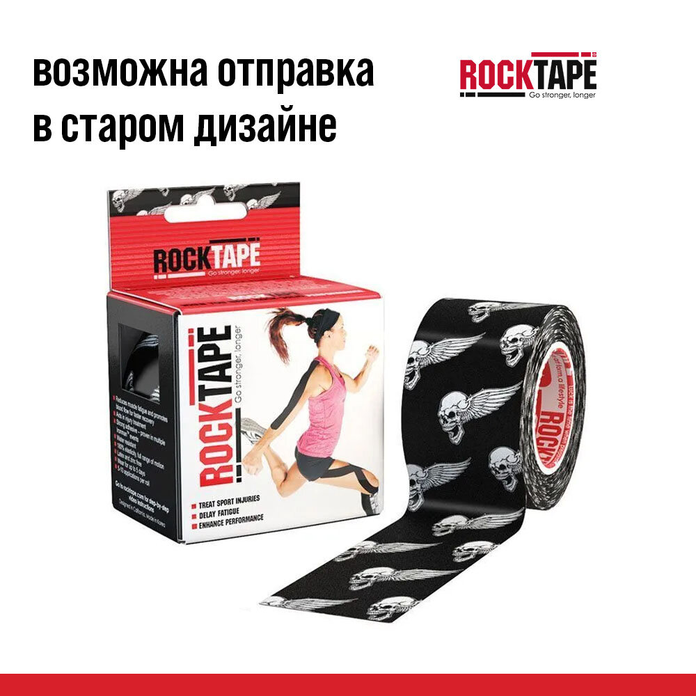 Купить Кинезиотейп Rocktape 5 см х 5 м, Skull Black