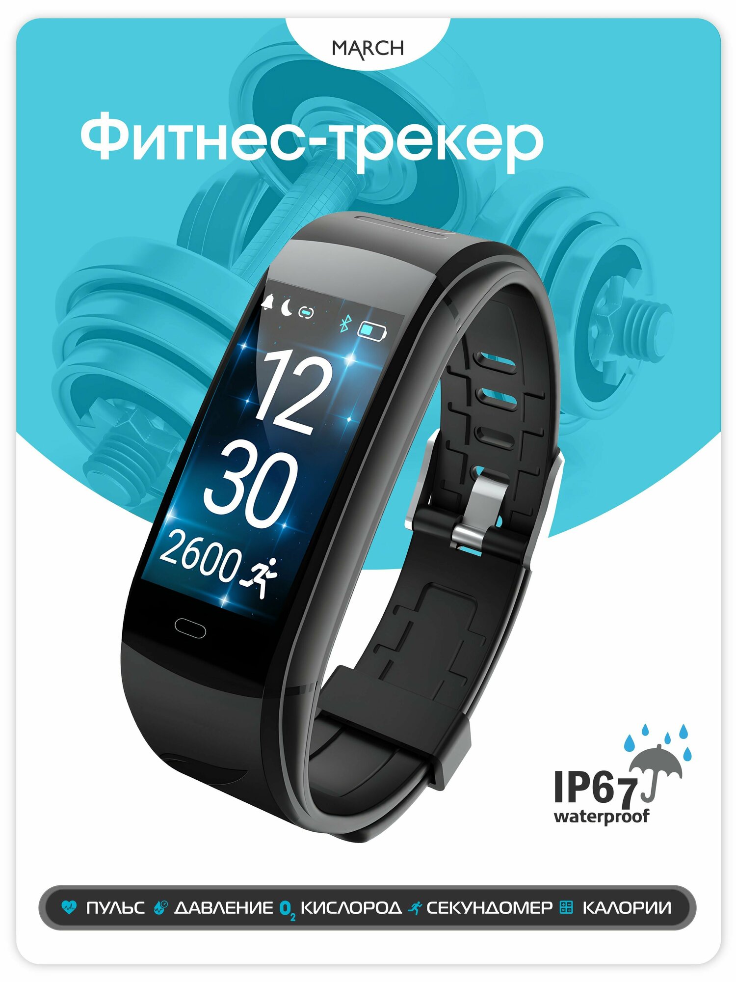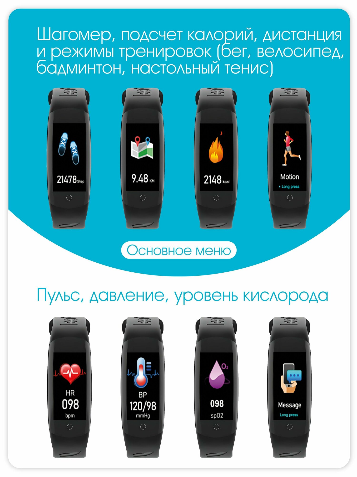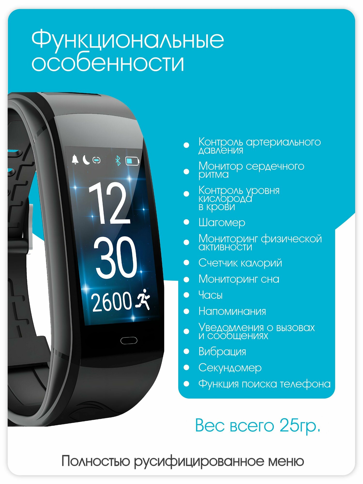 Фитнес-браслет Red Line RF-01, 0.96", IP68, пульсометр, датчик уровня кислорода, черный