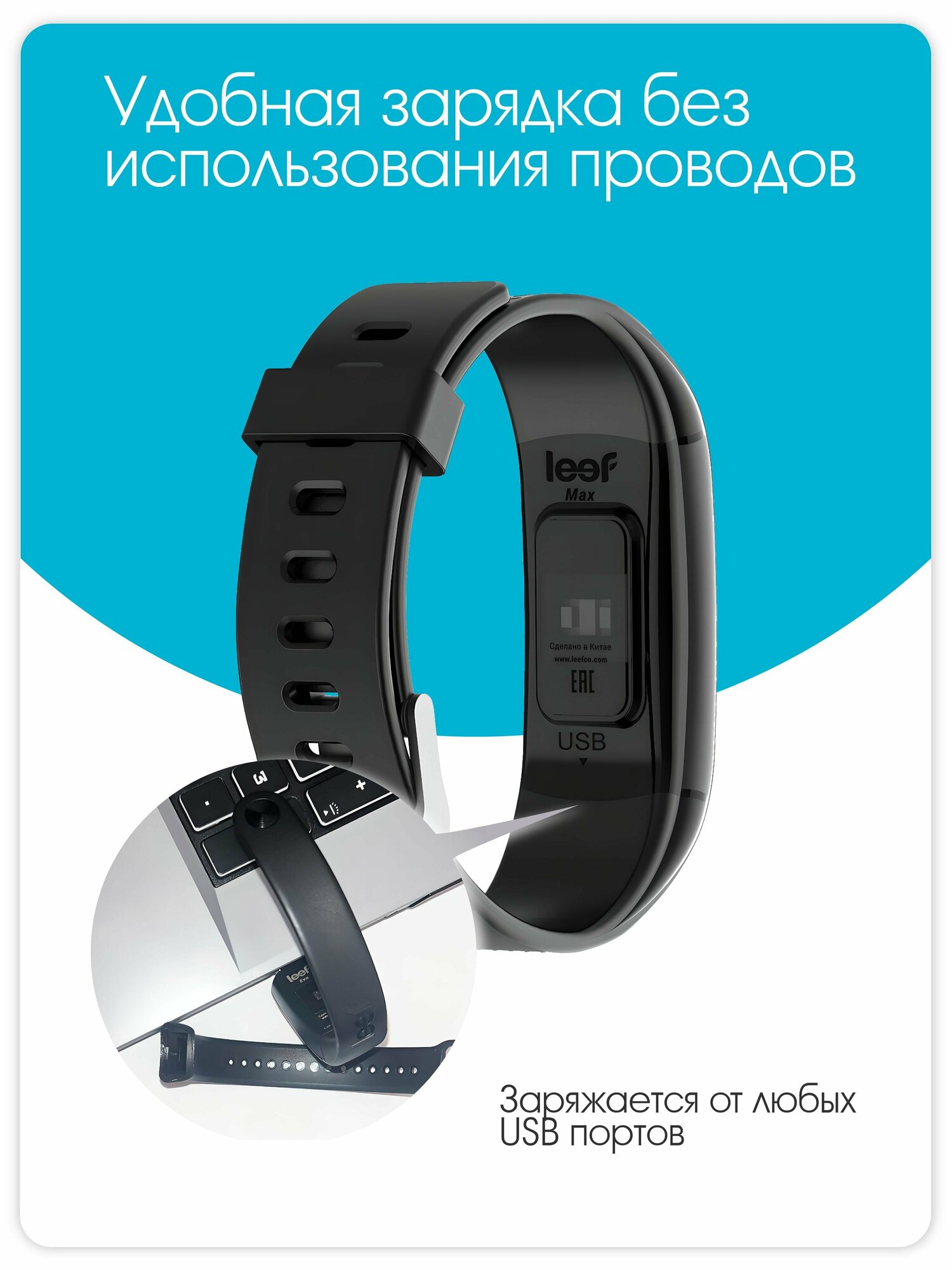 Влагозащищенный Фитнес-трекер LEEF Max черного цвета интересное: