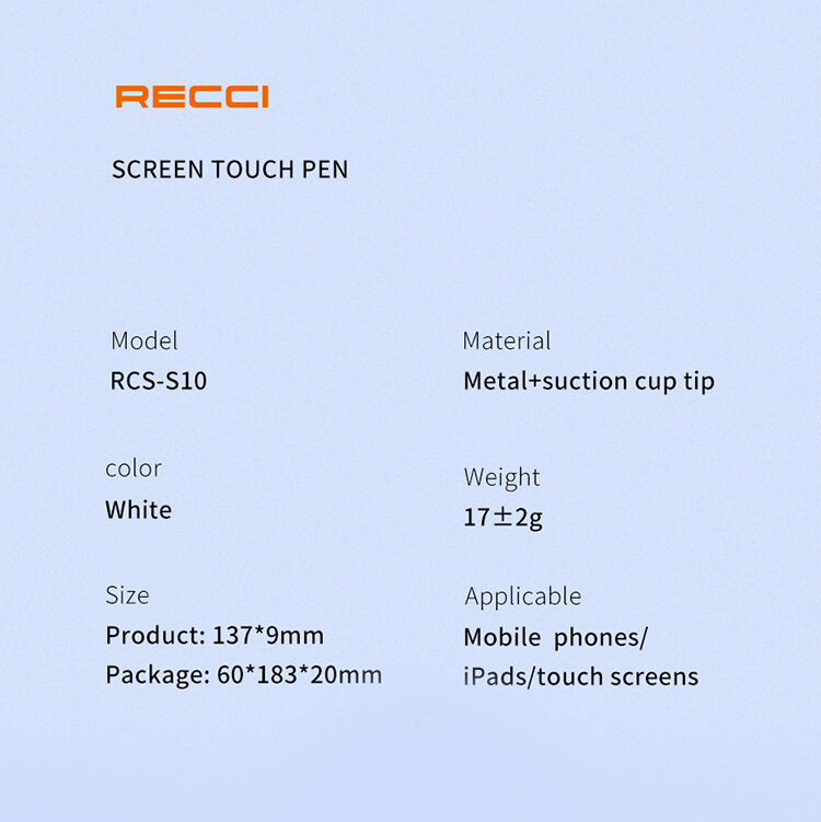 Купить Пассивный стилус RECCI Screen Touch Pen для планшетов и смартфонов iOS/Android/Windows, Белый, RCS-S10