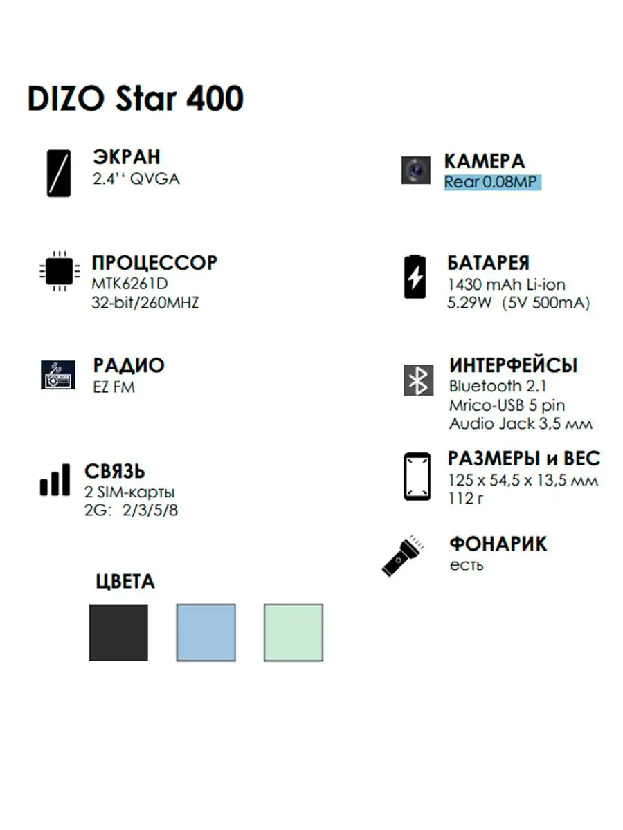 GSM Телефон DIZO Star 400 чёрный интересное: