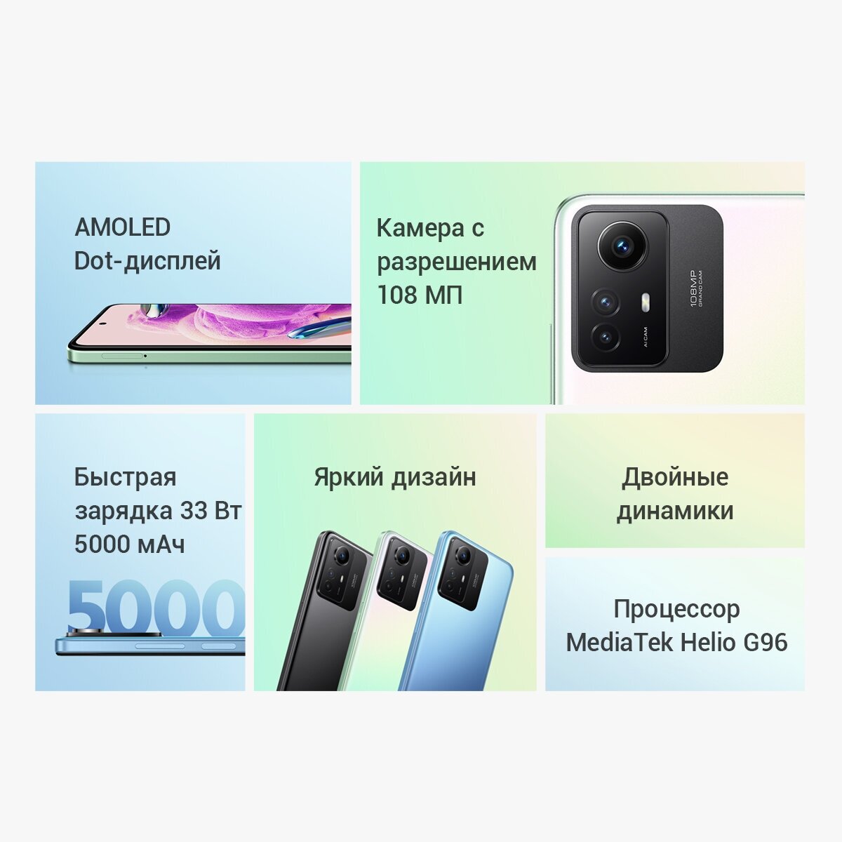 Семейный Redmi Note 12S, 8 ГБ + 256 ГБ, 5,7-дюймовый AMOLED дисплей, MediaTek Helio G96, камера 6,43 Мп + 16 Мп, аккумулятор 5000 мАч (новинка)