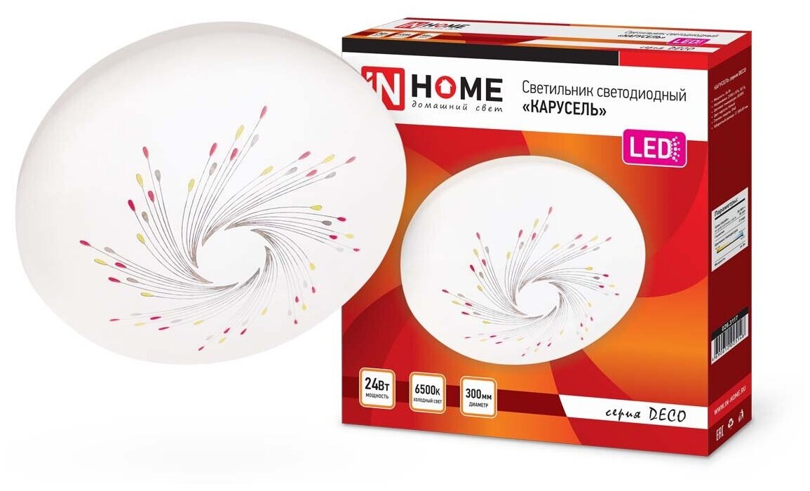 Светильник светодиодный DECO карусель 36Вт 230В 4000К 2340лм 350мм, IN HOME 4690612025025 (1 шт.)