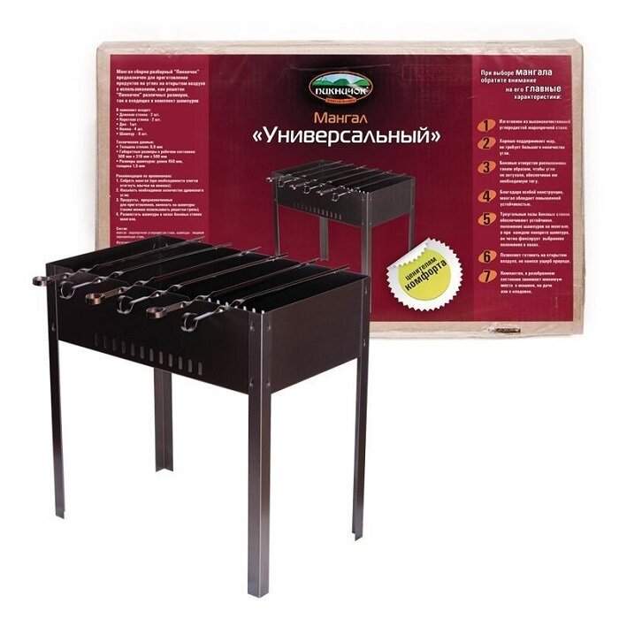 KG401-718 Мангал "Универсальный" + 6 шампуров, Пикничок интересное: