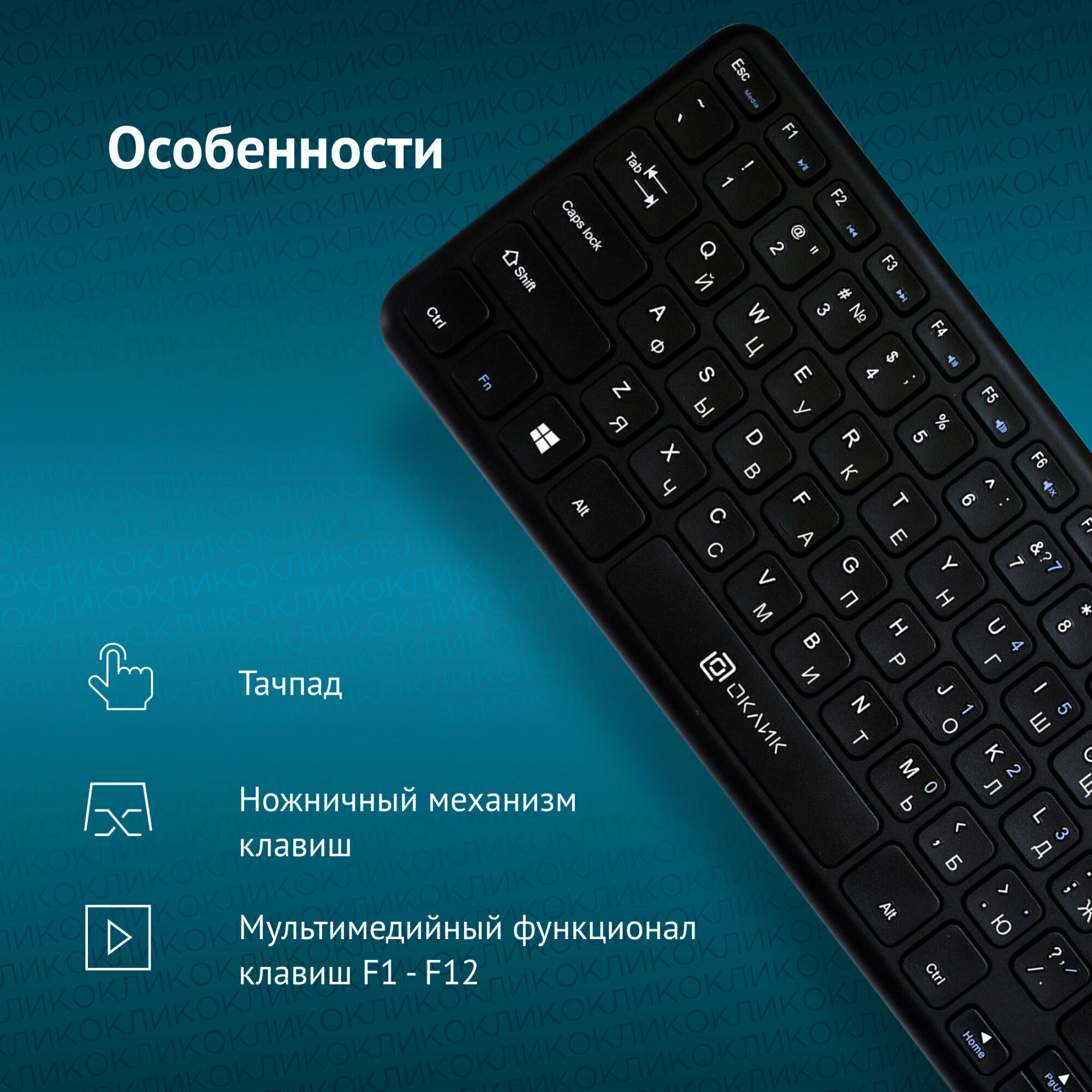 Клавиатура с тачпадом Oklick Wireless Ultraslim 830ST