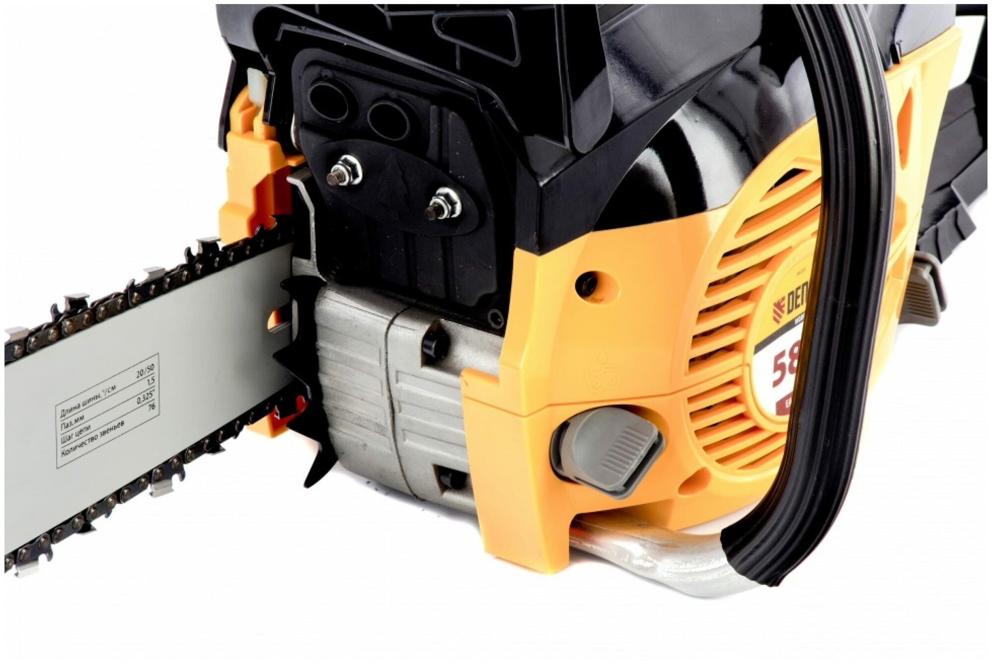 Пила цепная бензиновая DGS-5820, шина 50 см, 58 см3, 4.1 л.с, шаг 0.325, паз 1.5 мм, 76 звеньев Denzel