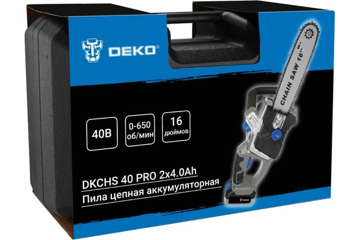 Пила цепная DEKO DKCHS 40 PRO аккумуляторная в кейсе 063-4357