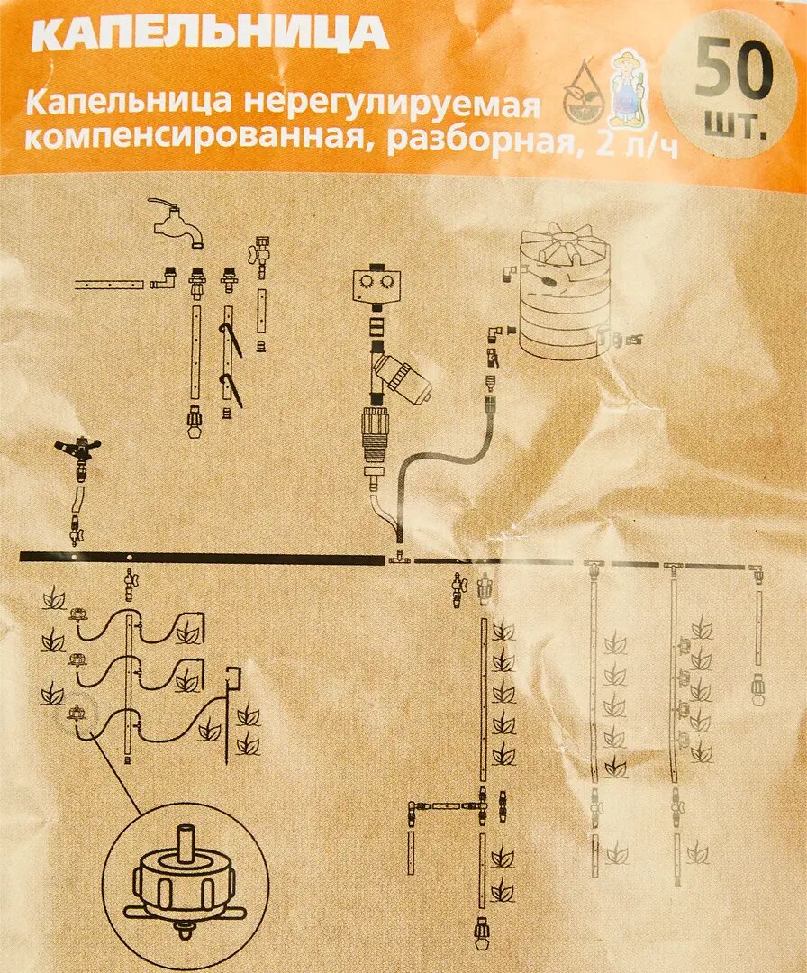 Нерегулируемая компенсированная разборная капельница Профитт 2 л/ч, 50 шт. 1892389