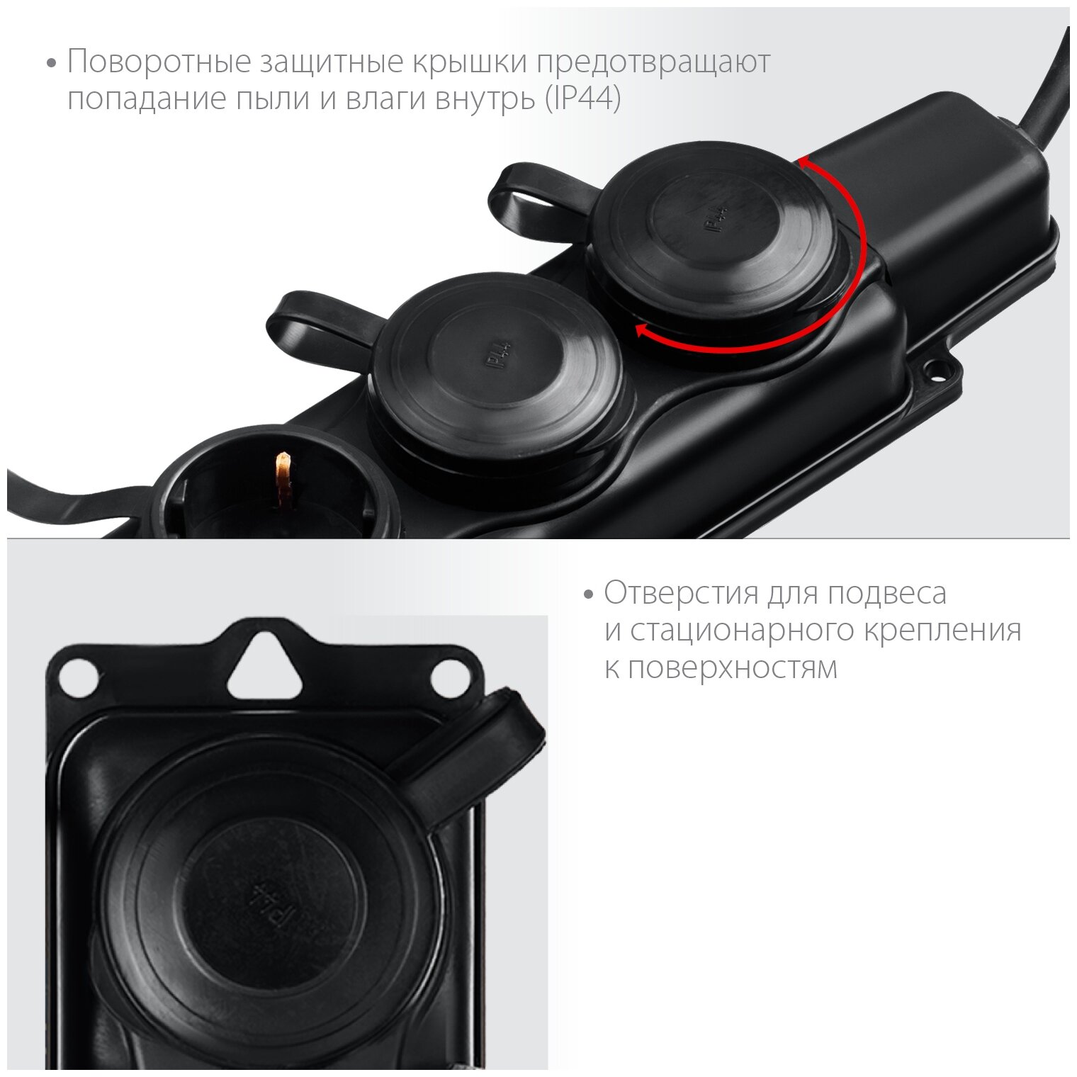 Силовой удлинитель ЗУБР КГ 3х2.5 10м 3гн. 4000Вт IP44, КГ 325-Ш3, Профессионал