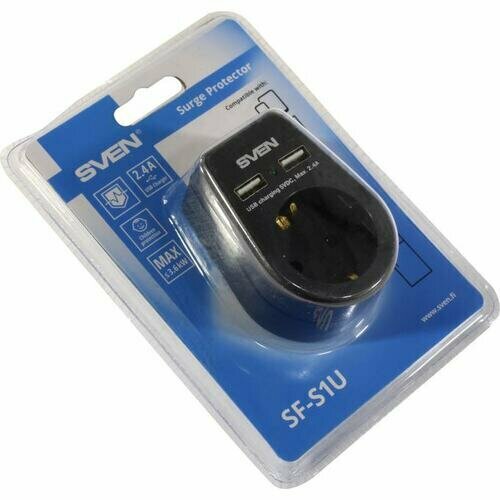 Купить Сетевой фильтр Sven SF-S1U 2xUSB 1 Socket Black SV-019020