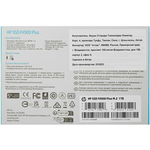 Ниже Вы можете прочитать отзывы на 1024 ГБ SSD M.2 накопитель HP FX900 plus (7F617AA#AAB), ознакомится с подробными характеристиками, посмотреть интересные обзоры и фотографии на 1024 ГБ SSD M.2 накопитель HP FX900 plus (7F617AA#AAB).