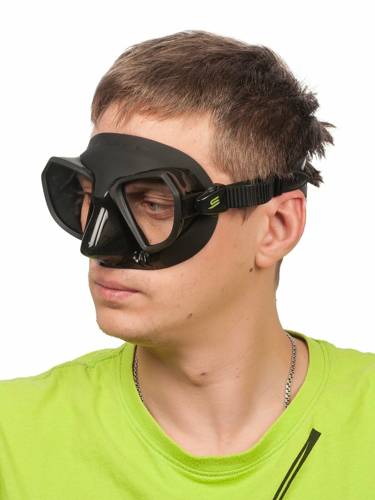 Маска для плавания Salvimar NOAH, черная с кислотно-зеленой рамкой