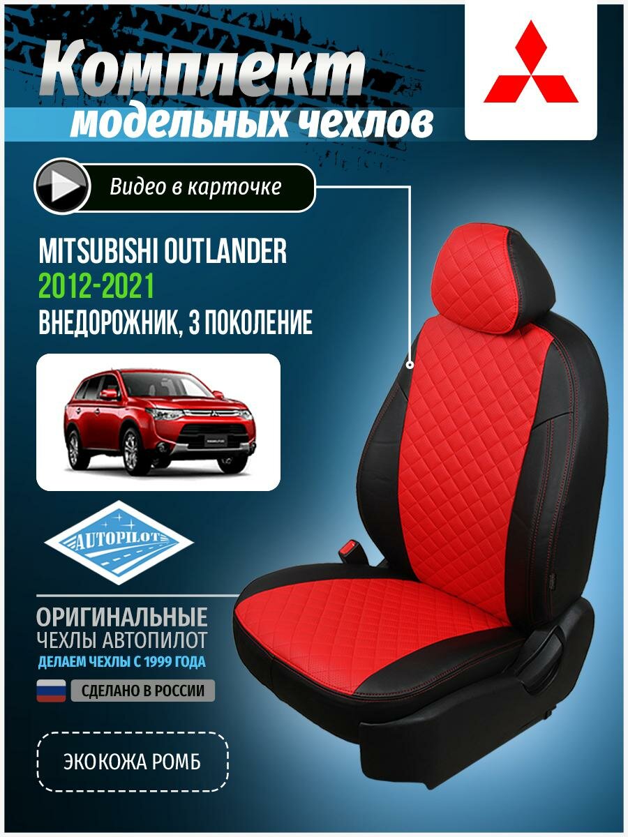 Чехлы для Mitsubishi Outlander 3 2012-2020 Автопилот Красный Экокожа с ромбом mi-ou-o3-chekr-r
