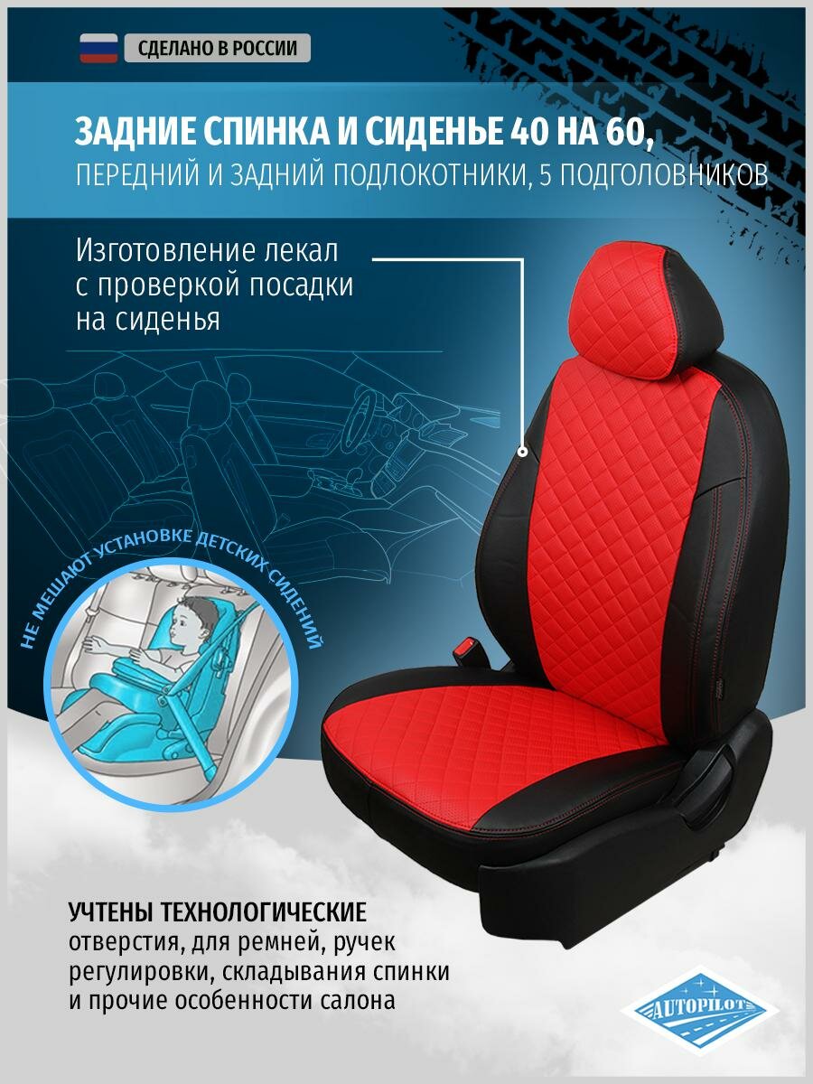 Чехлы на сиденья "АВТОПИЛОТ" из экокожи для Mitsubishi Outlander III с 12г. Черный, Красный. mi-ou-o3-chekr-e