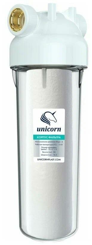 Фильтр для воды UNICORN магистральный, 10'', прозрачный корпус, 1/2 KSBP 12