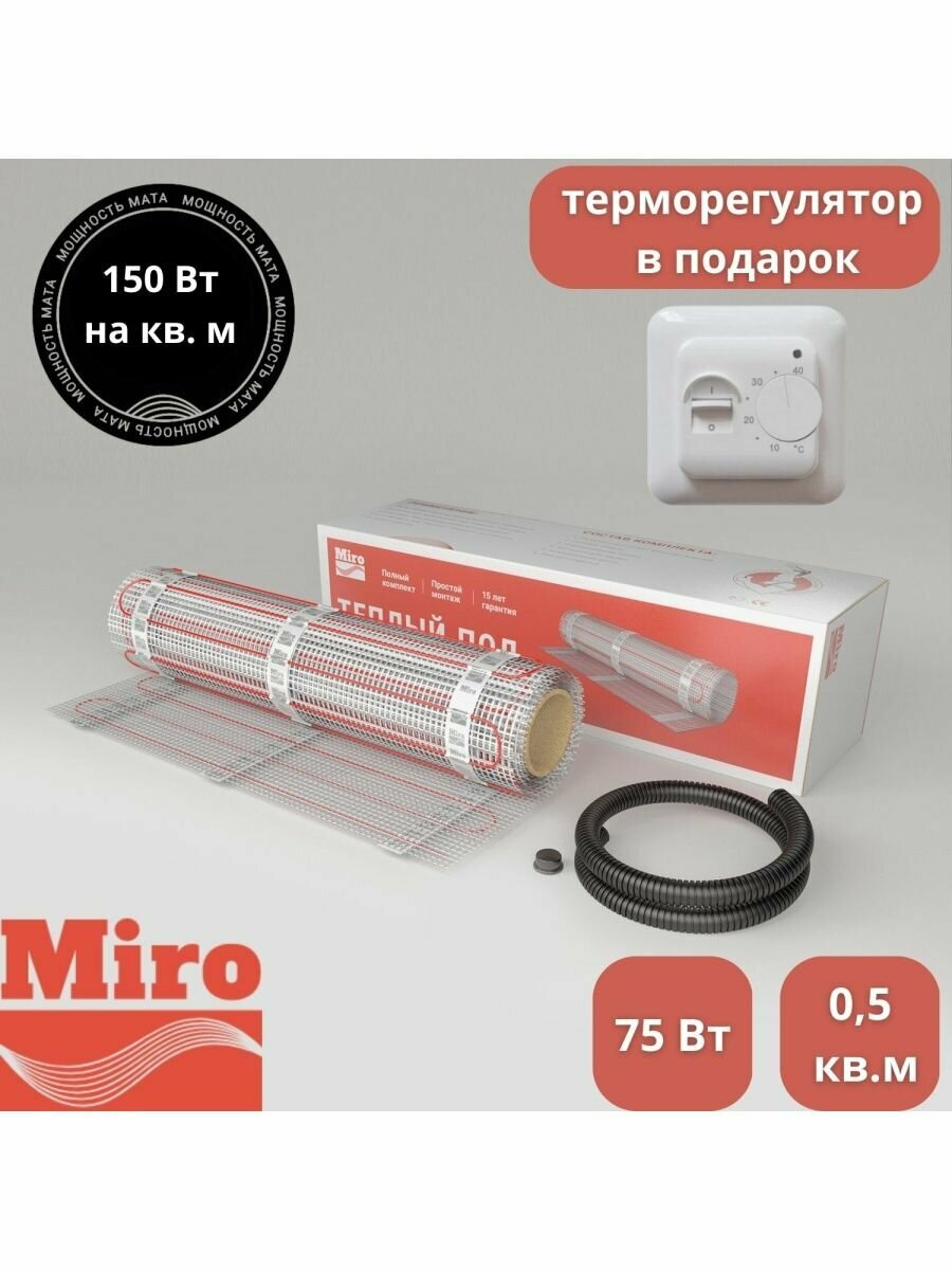 Купить Теплый пол нагревательный мат Miro 0.5 кв.м - 75 Вт