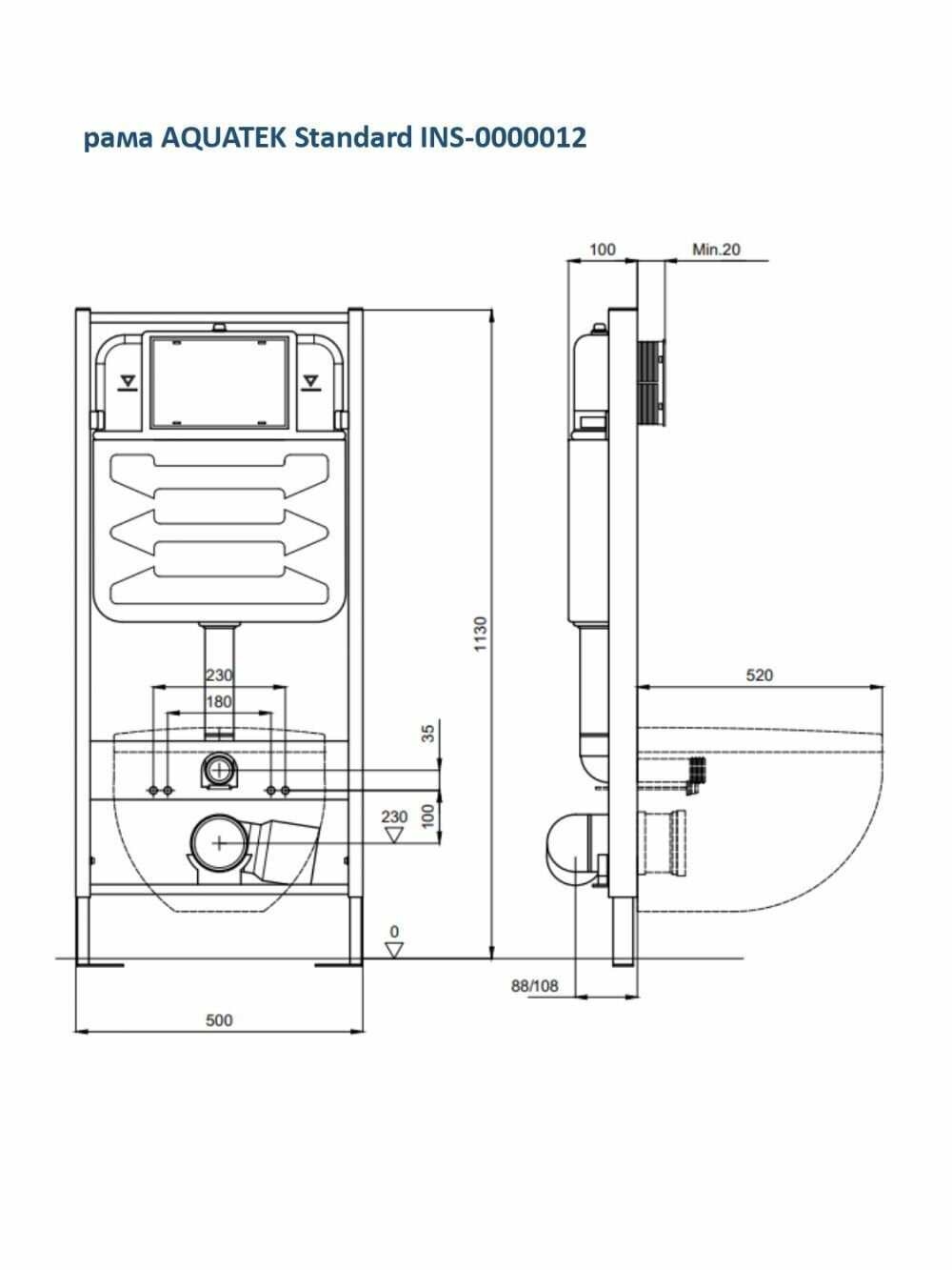 Комплект Акватек Set AQUATEK европа New cm (рама Standard INS-0000012+звукоизоляционная прокладка+унитаз европа AQ1106-00+сиденье)
