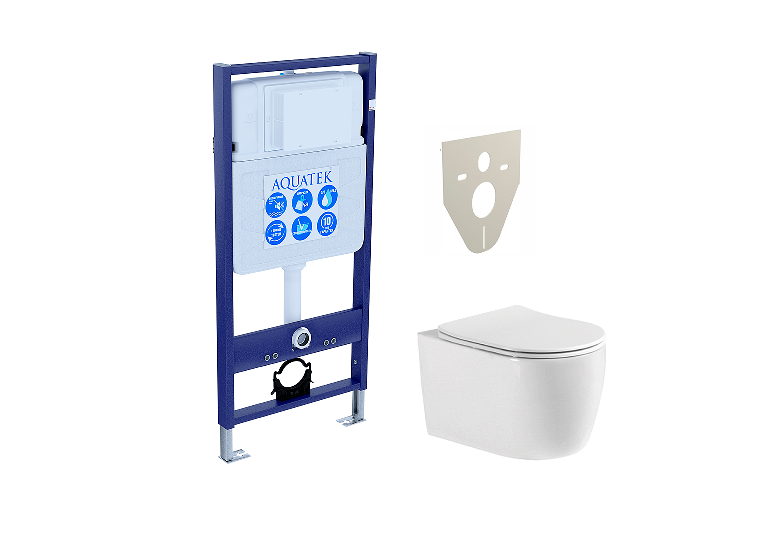 Комплект унитаз с инсталляцией AQUATEK европа (рама AQUATEK Standard INS-0000012, звукоизоляционная прокладка, унитаз европа AQ1106-00, тонкое сиденье с механизмом плавного закрывания)