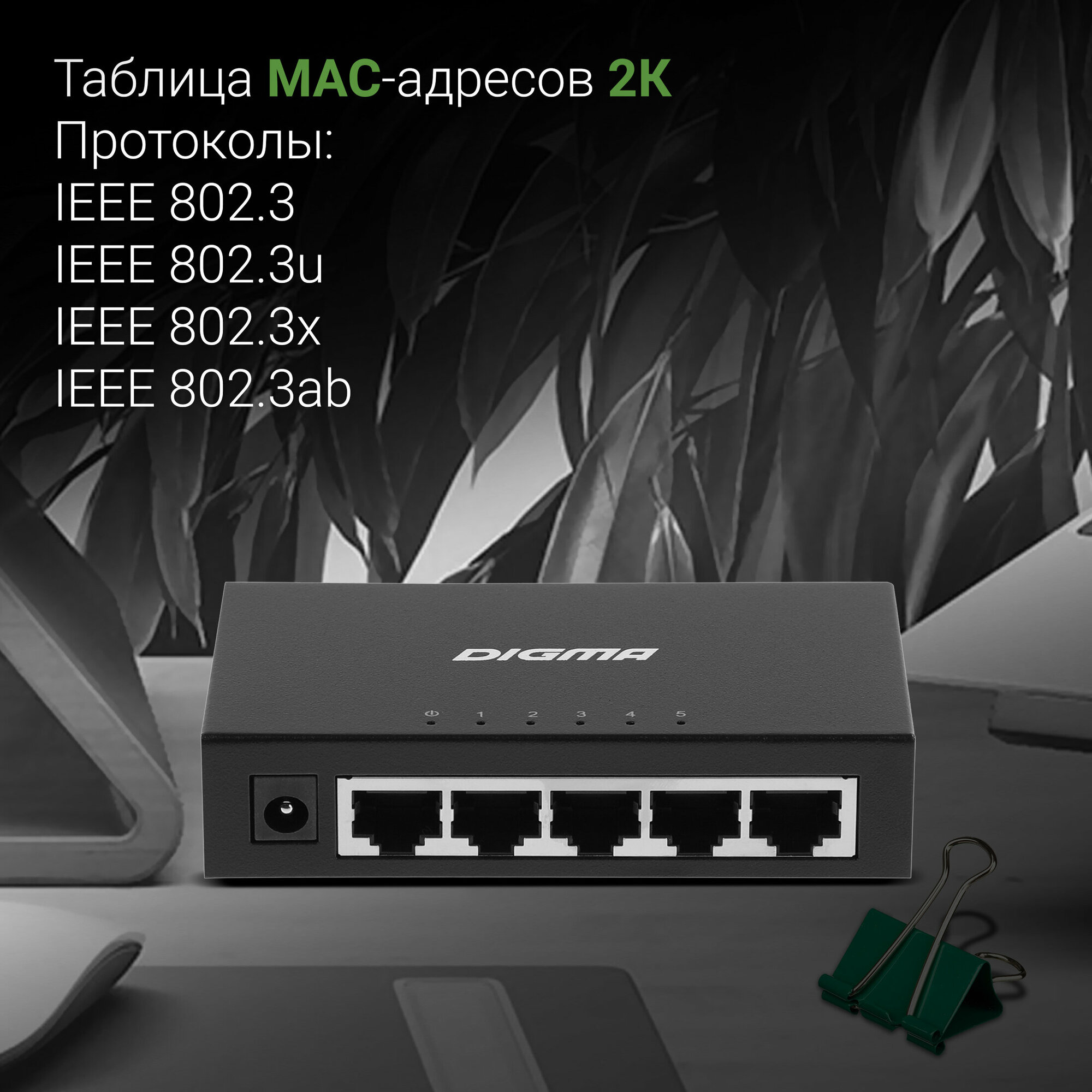 Коммутатор Digma Dsw-205ge 5G неуправляемый Dsw-205ge . интересное: