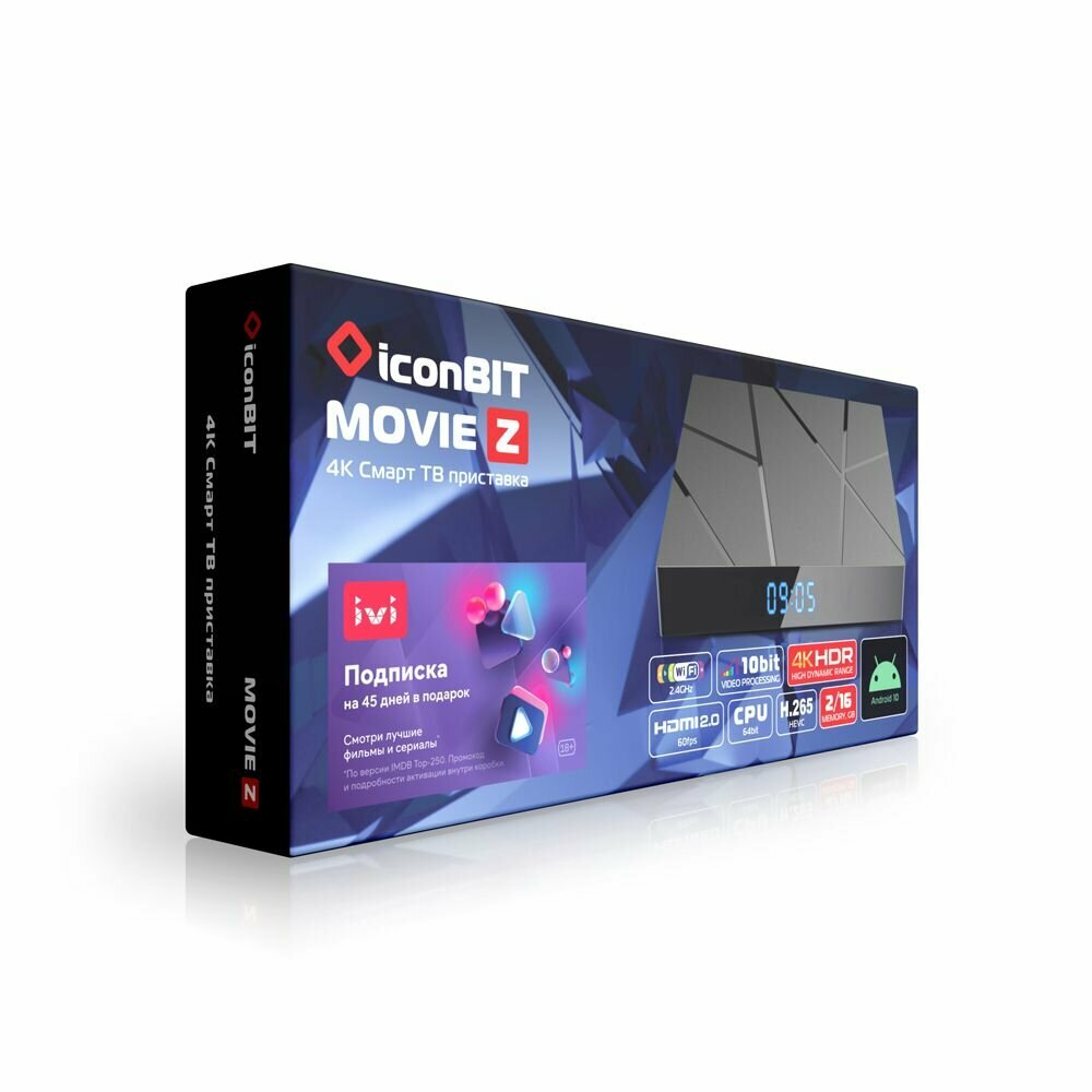 Приставка Смарт ТВ IconBIT Movie Z, 2 ГБ ОЗУ, 16 ГБ ,Android, Ultra HD, Wi-Fi, HDMI, чёрная