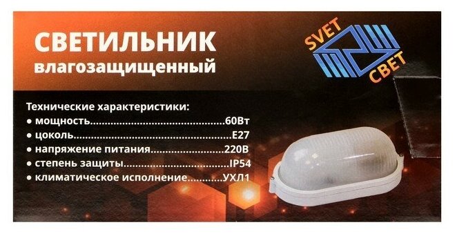 Светильник, SVET, IP54, влагозащищенный, белый, SV0107-0011