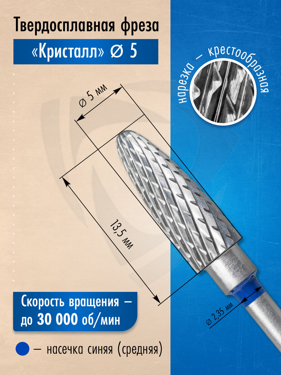 Купить Кристалл, Твердосплавная фреза 31235 (кукуруза, конус), средняя, D5, L13,5