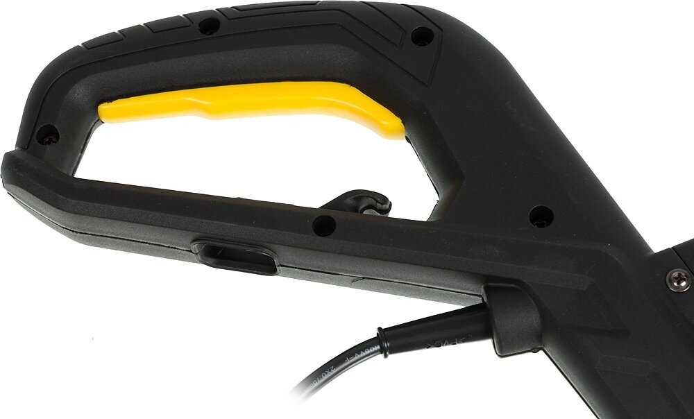 | Отзыв: | Триммером кошу газон на даче, он легкий, меньше двух килограмм весит, и есть дополнительная ручка, работаю с удовольствием. Кнопка включения прямо под пальцами, и нажимается легко. Подключаю через обычный удлинитель, кабель на самом триммере с вилкой на конце. |