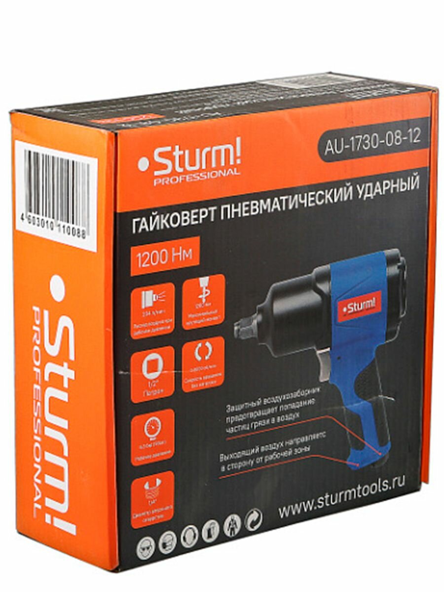 Гайковерт пневматический крутящий момент 1200 Нм, патрон 1/2&quot Sturm! интересное: