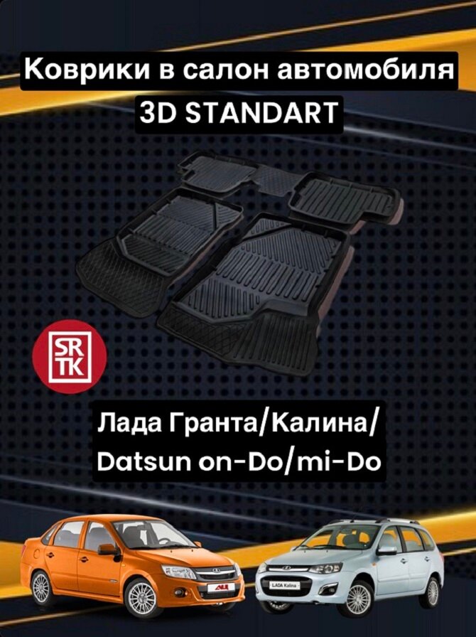 Ковры резиновые Лада Гранта/Калина/Датсун/Кросс/Granta/Kalina/Cross/on-Do 3D Standart SRTK (Саранск) комплект в салон