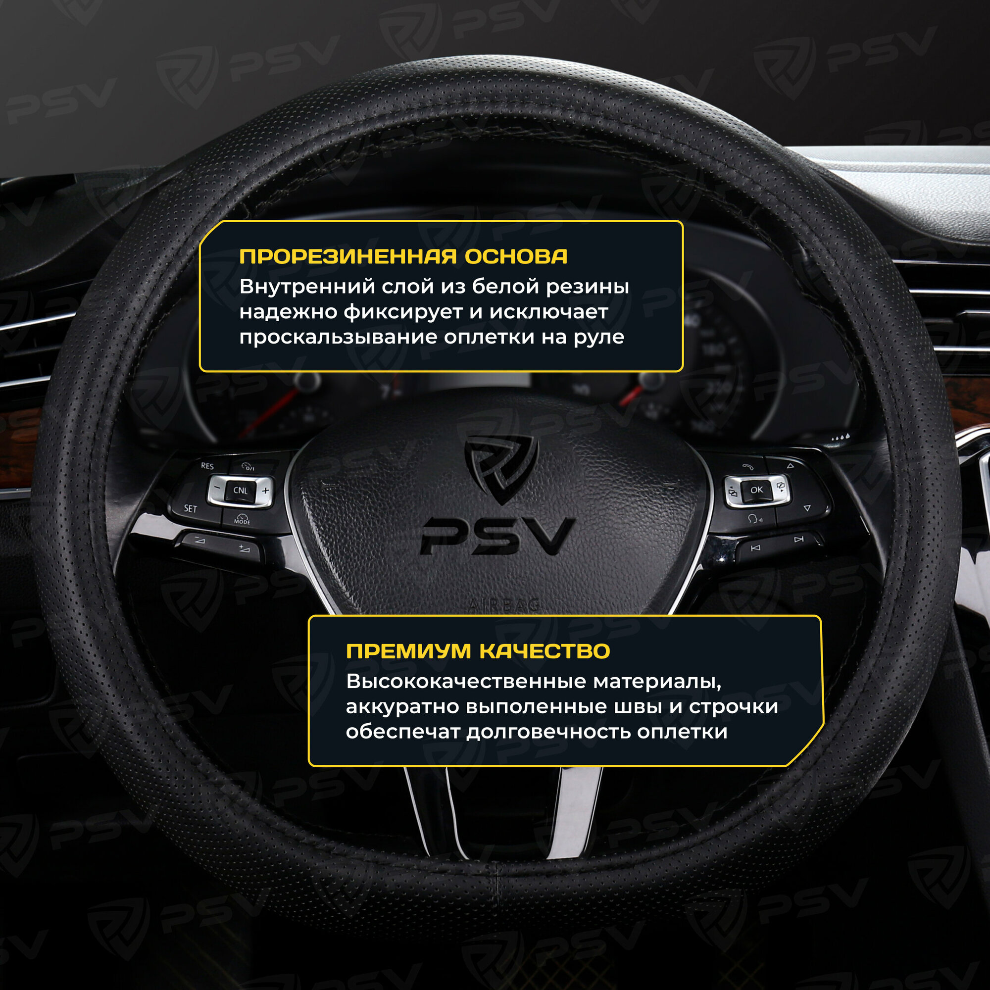 Оплетка чехол на руль PSV FACTOR PLUS (Черный) M 37-39 см, перфорированная экокожа, 131097