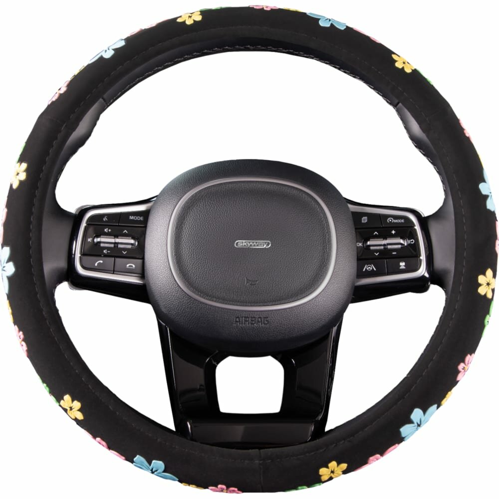 SKYWAY Оплётка руля SKYWAY вельвет гладкая черная с рисунком Цветы ECO (M)