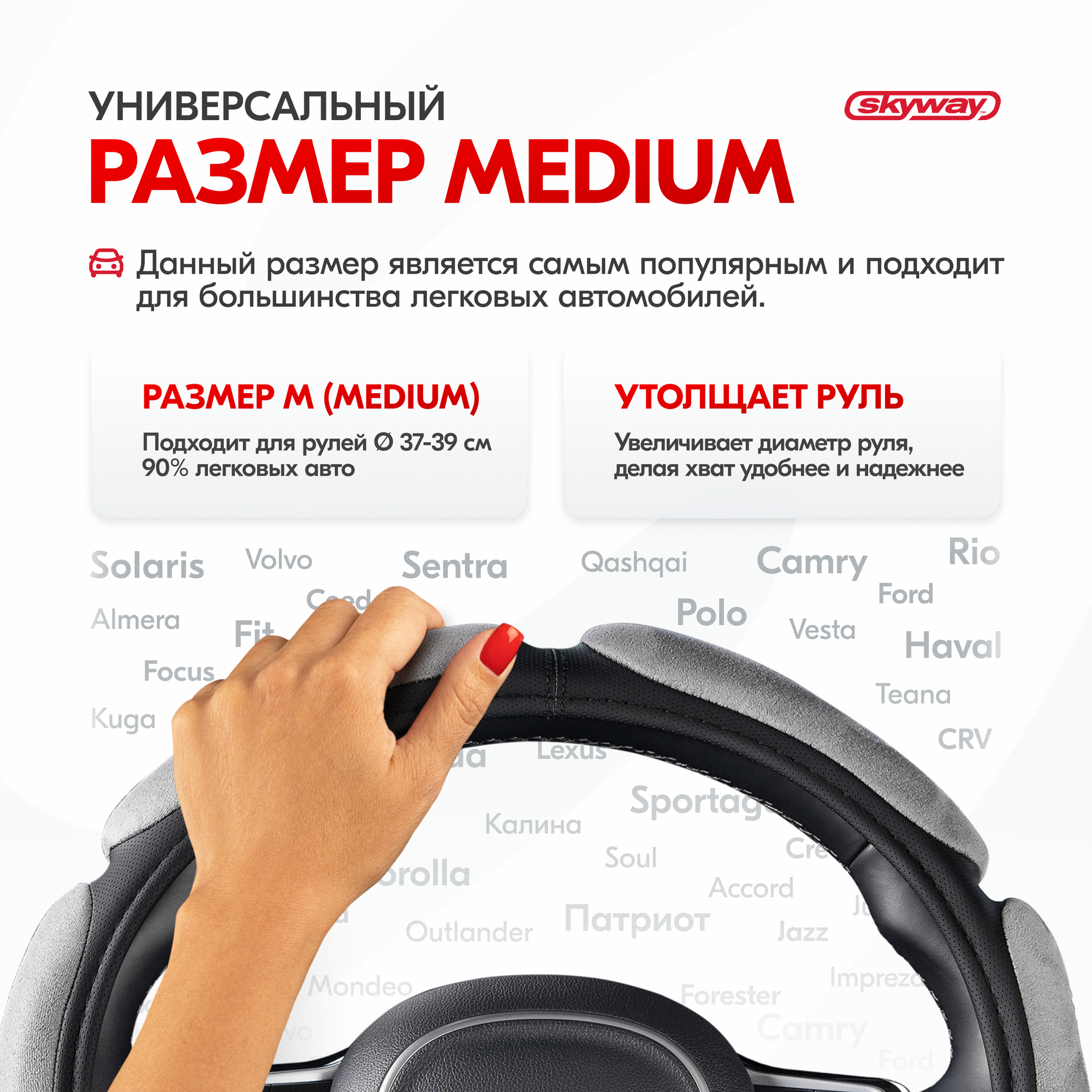 Оплетка на руль Top-12 SKYWAY M (37-39) серый экокожа, S01102501