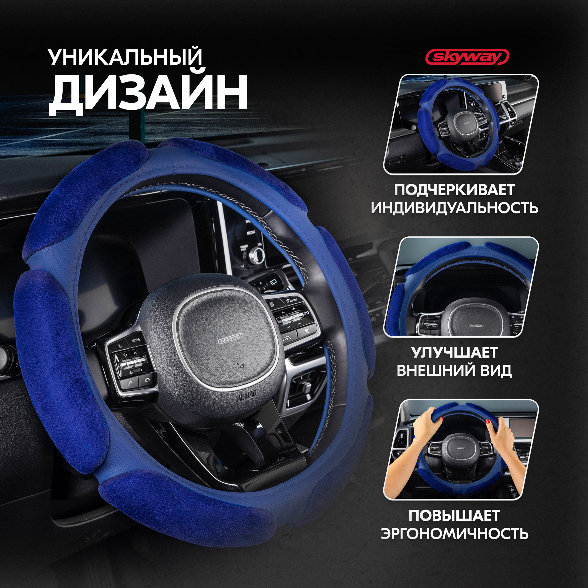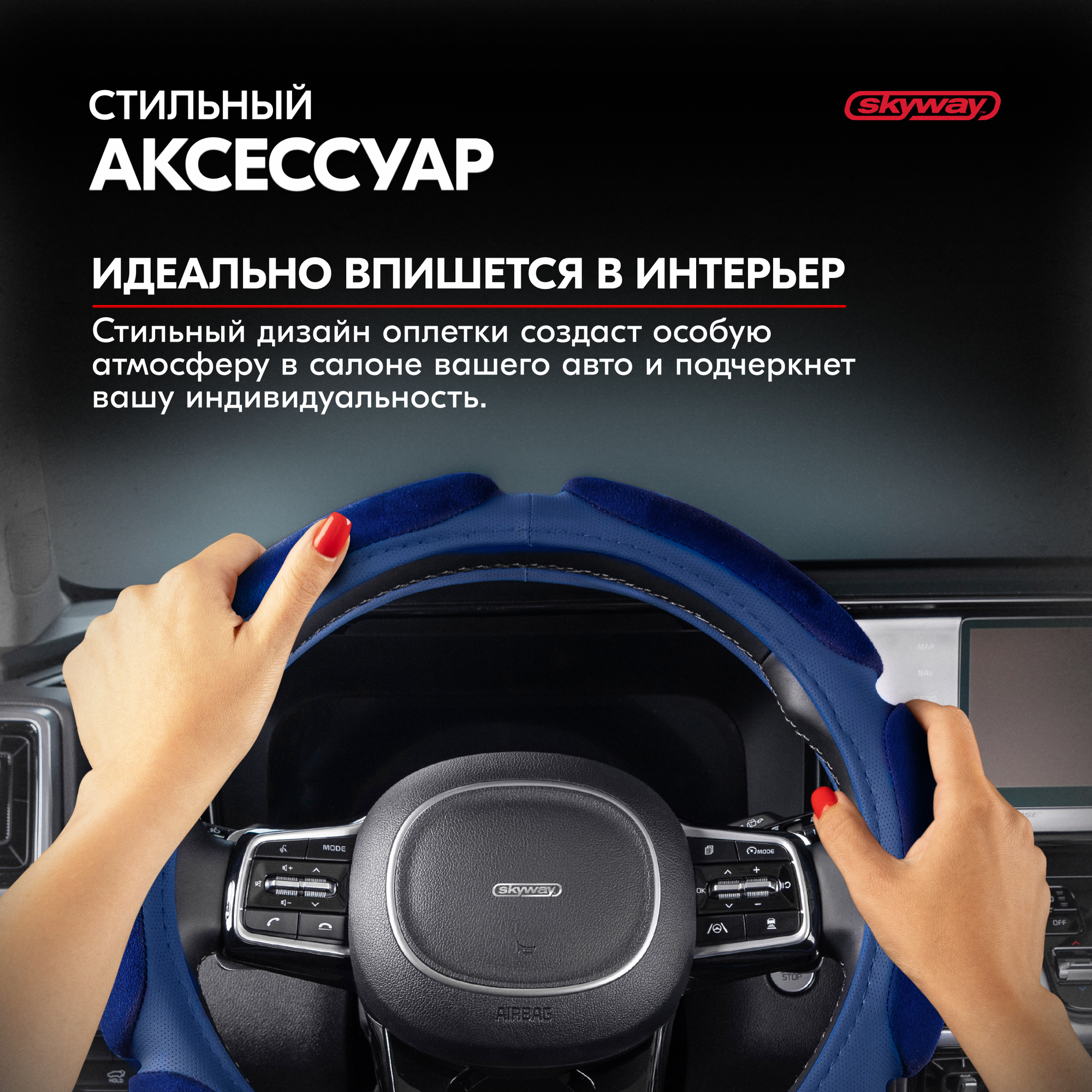Оплётка руля SKYWAY замша 6 подушечек Синяя ECO (M)