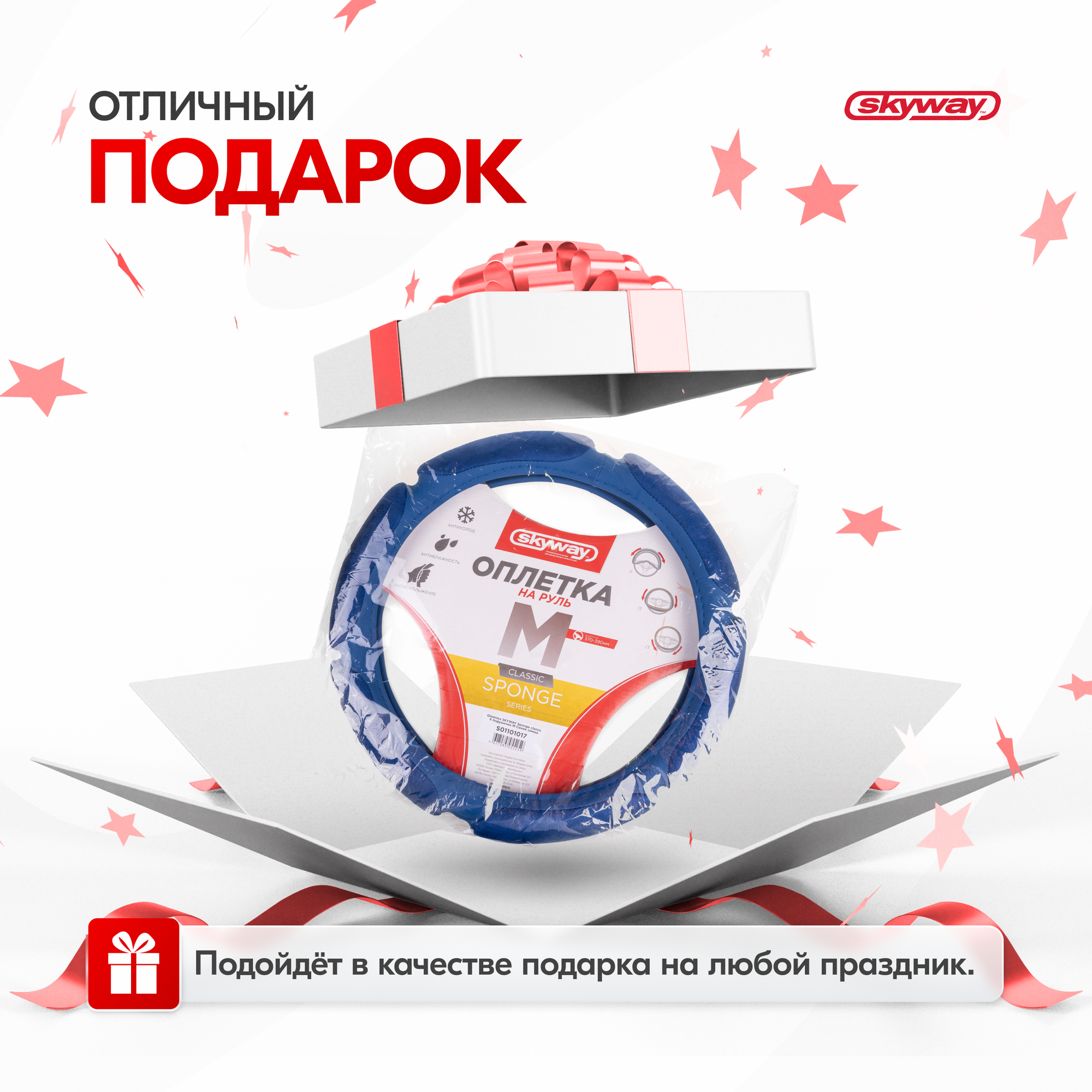 Оплетка руля SKYWAY Sponge Classic M, алькантара/экокожа, красный, размер М (37/38/39 см), S01101015