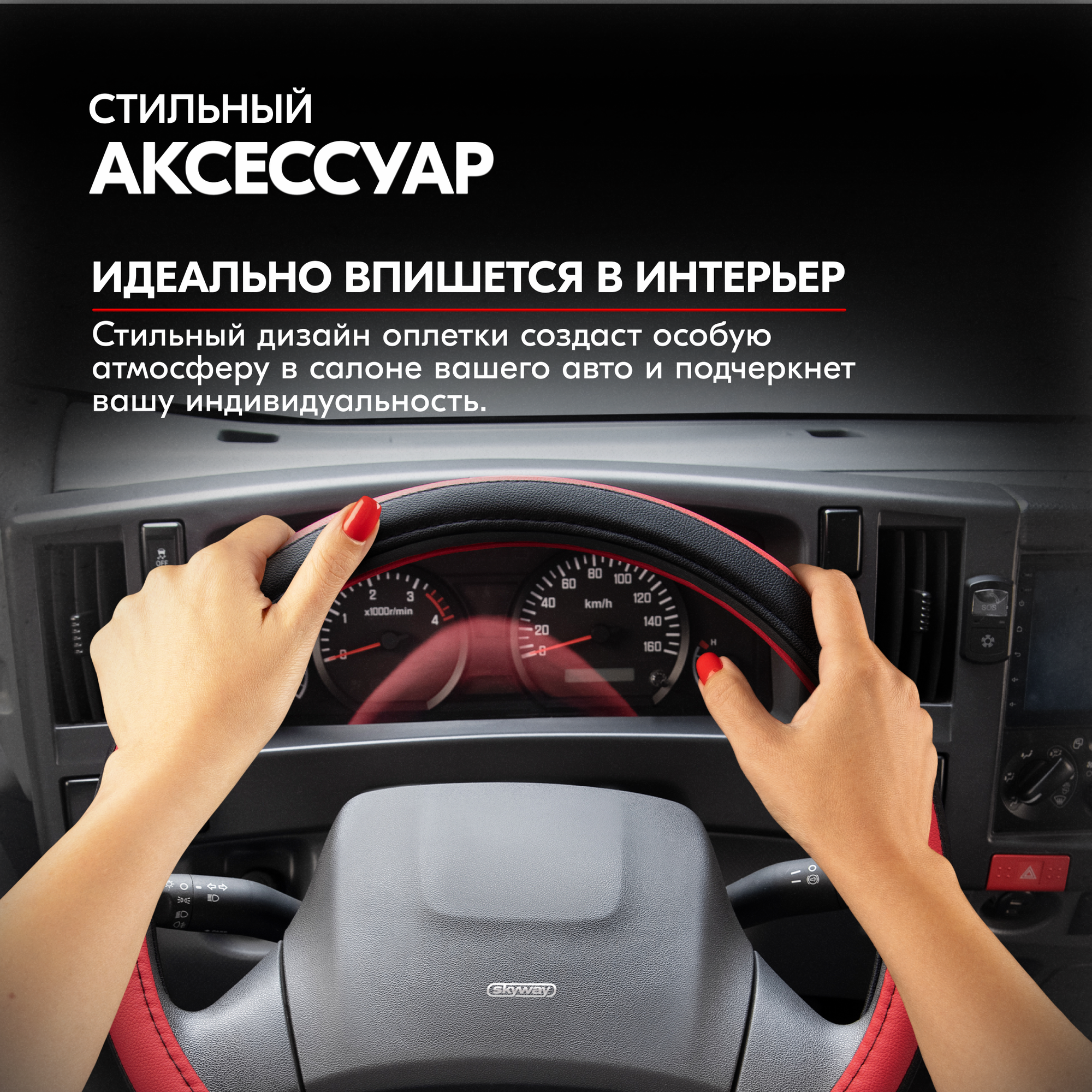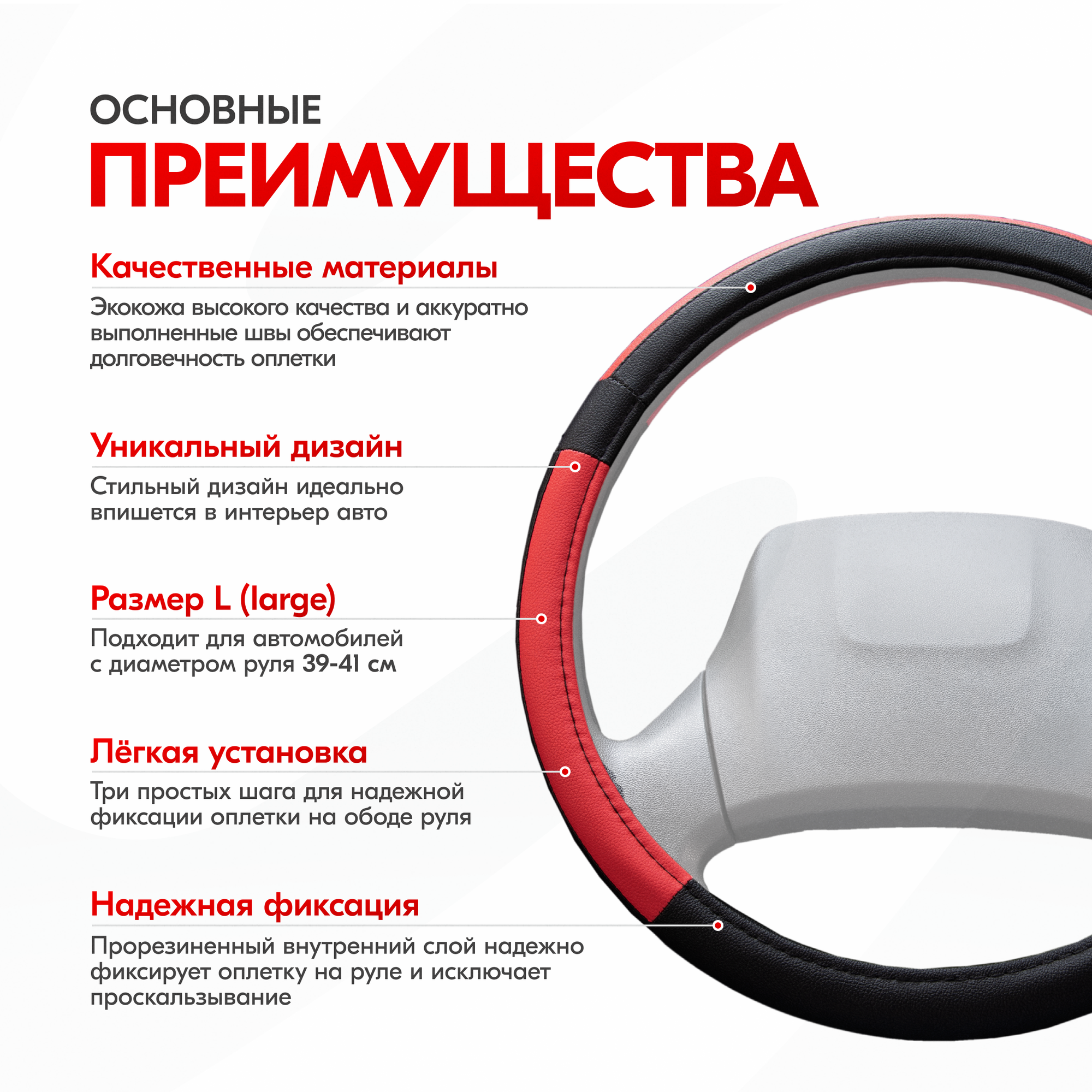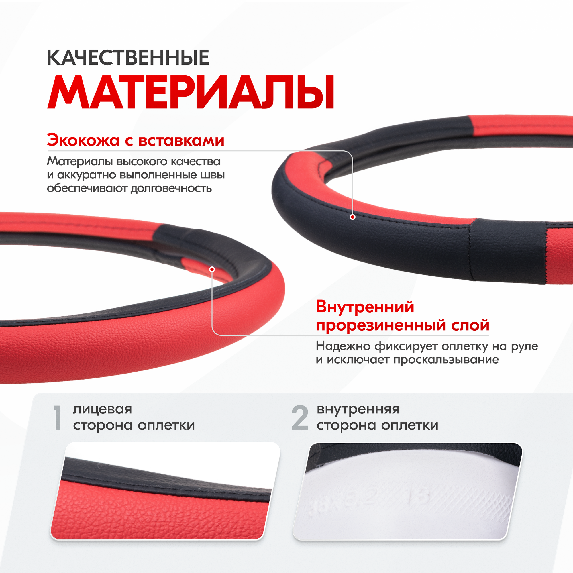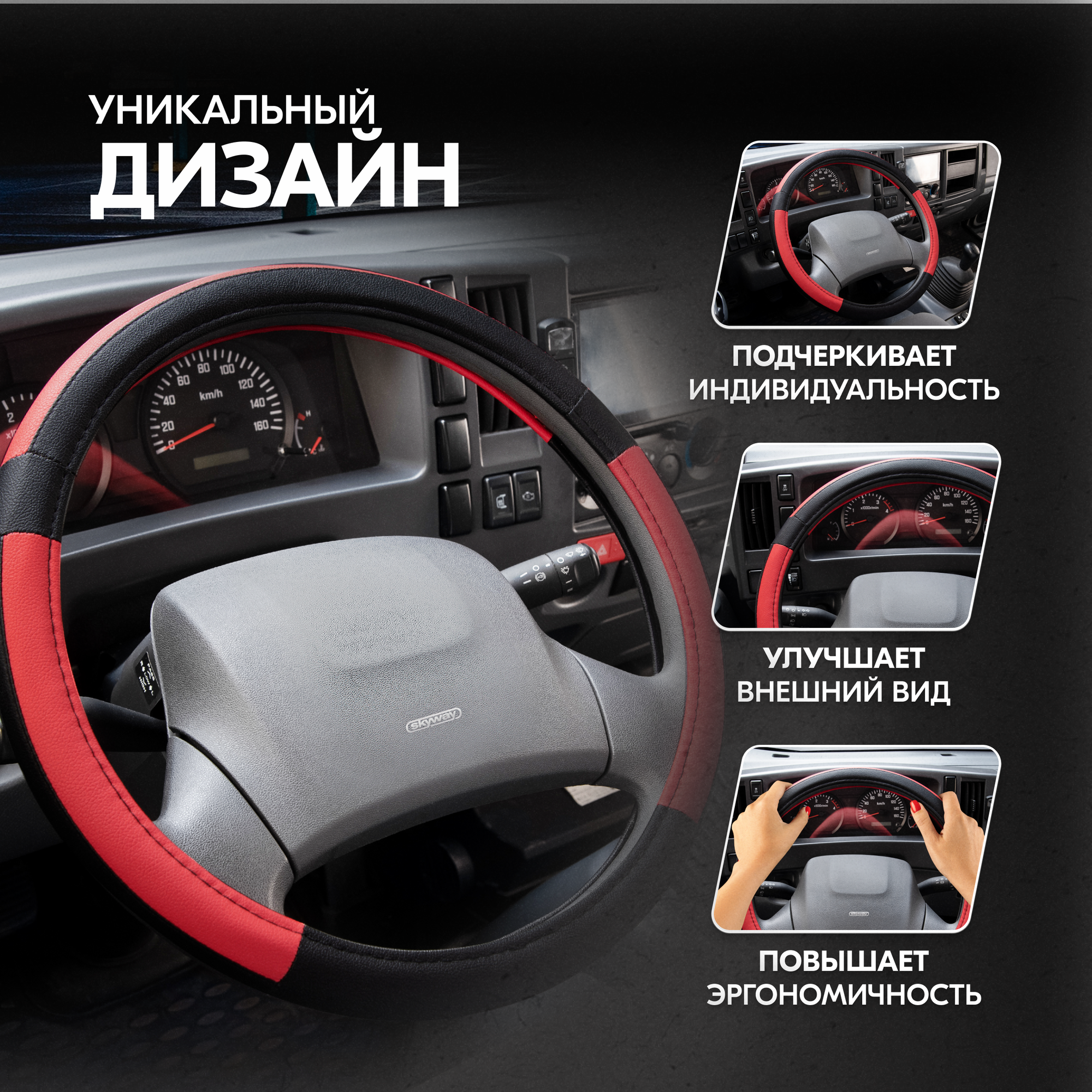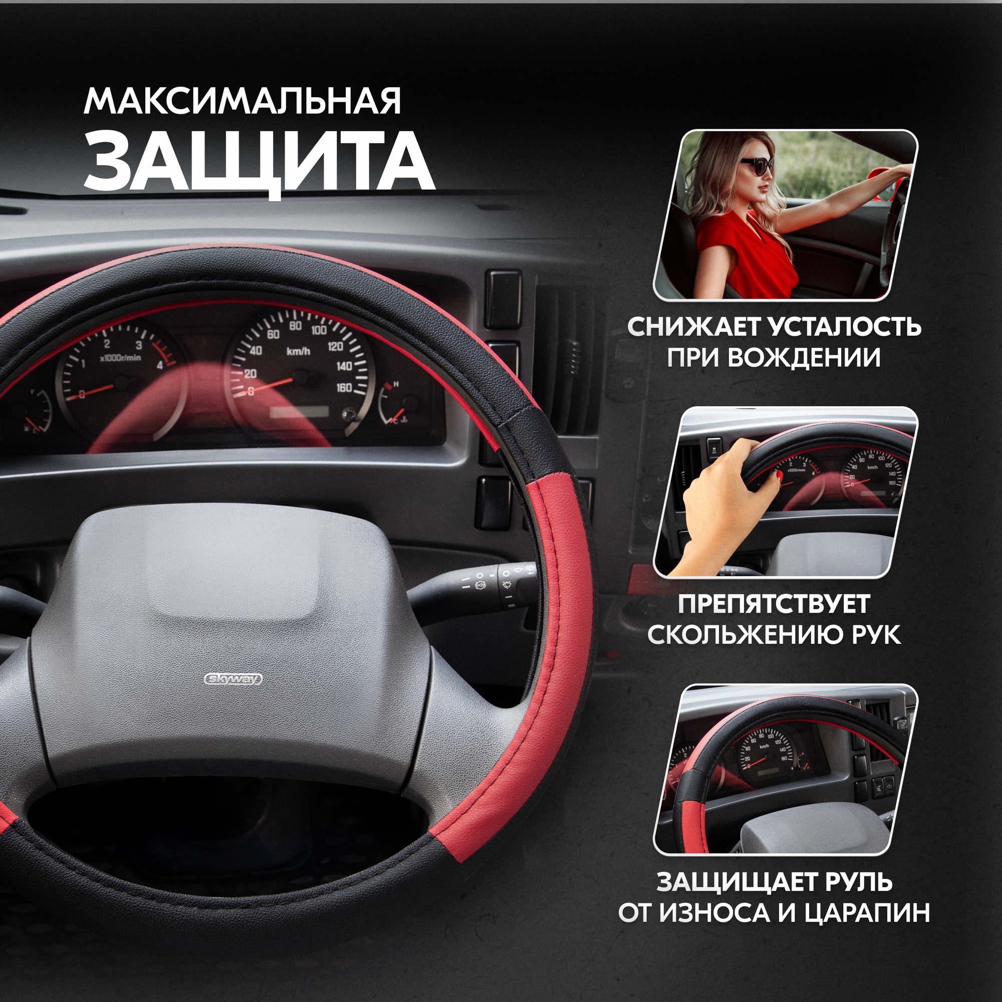 СохранитьОплетка на руль Combo-3 SKYWAY L (39-41) черный; красный экокожа , S01102365 интересное: