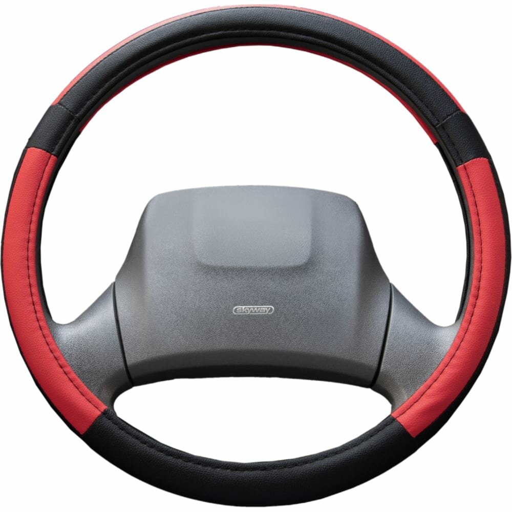 Купить Оплетка на руль Combo-3 SKYWAY L (39-41) черный; красный экокожа , S01102365