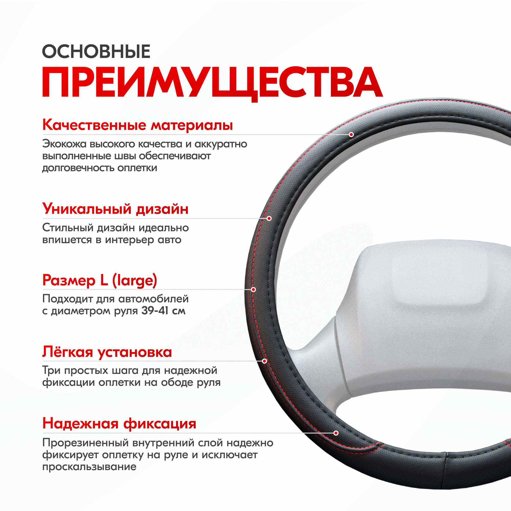 | Дополнительная информация | Рекомендации производителей: выбирайте оплётку под размер вашего рулевого колеса. Неверно выбранный размер может стать причиной проскальзывания оплётки или привести к невозможности снять или надеть её на руль. |